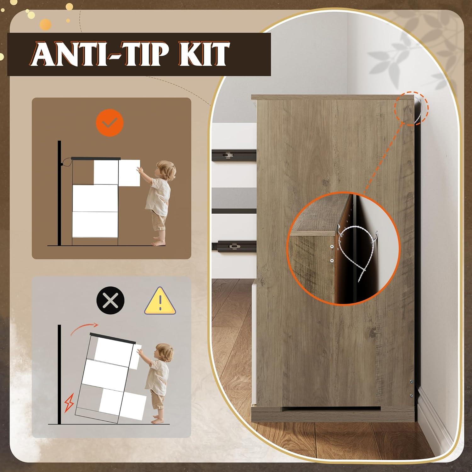 🎄【Stable and Durable】The chest of drawers is made of high quality artificial wood, which is scratch-resistant, easy to clean and the countertop can bear up to 55lbs. The drawer is equipped with smooth rails and strong metal handles to ensure that every push and pull is easy and smooth. The extra support plate at the bottom of the drawer makes the drawer more load-bearing. Additional anti-tilt device can easily fix the cabinet to the wall, ensuring the safety of you, your family and pets!