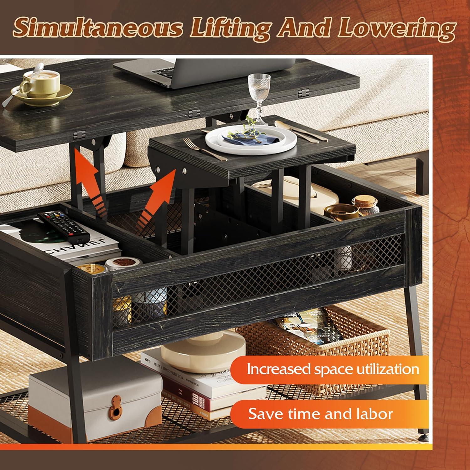 【Product Dimension】Measuring 36.22″”D x 39.37″”W x 27.17″”H, this coffee table offers ample space and functionality. The large lift-top supports up to 33 lbs, while the smaller one can hold up to 14 lbs, accommodating all your essentials with ease.