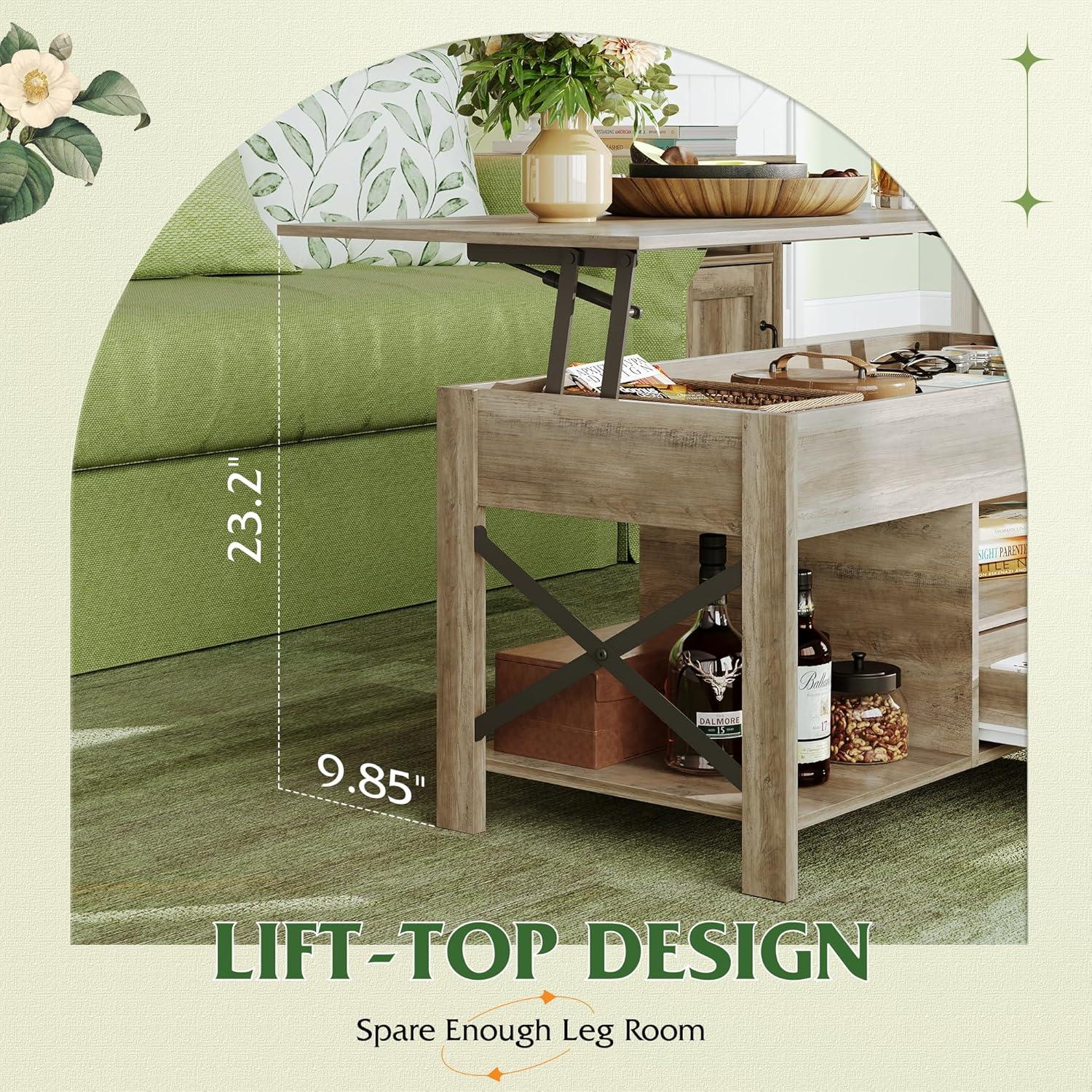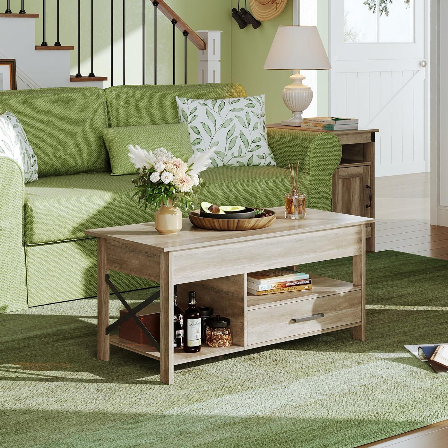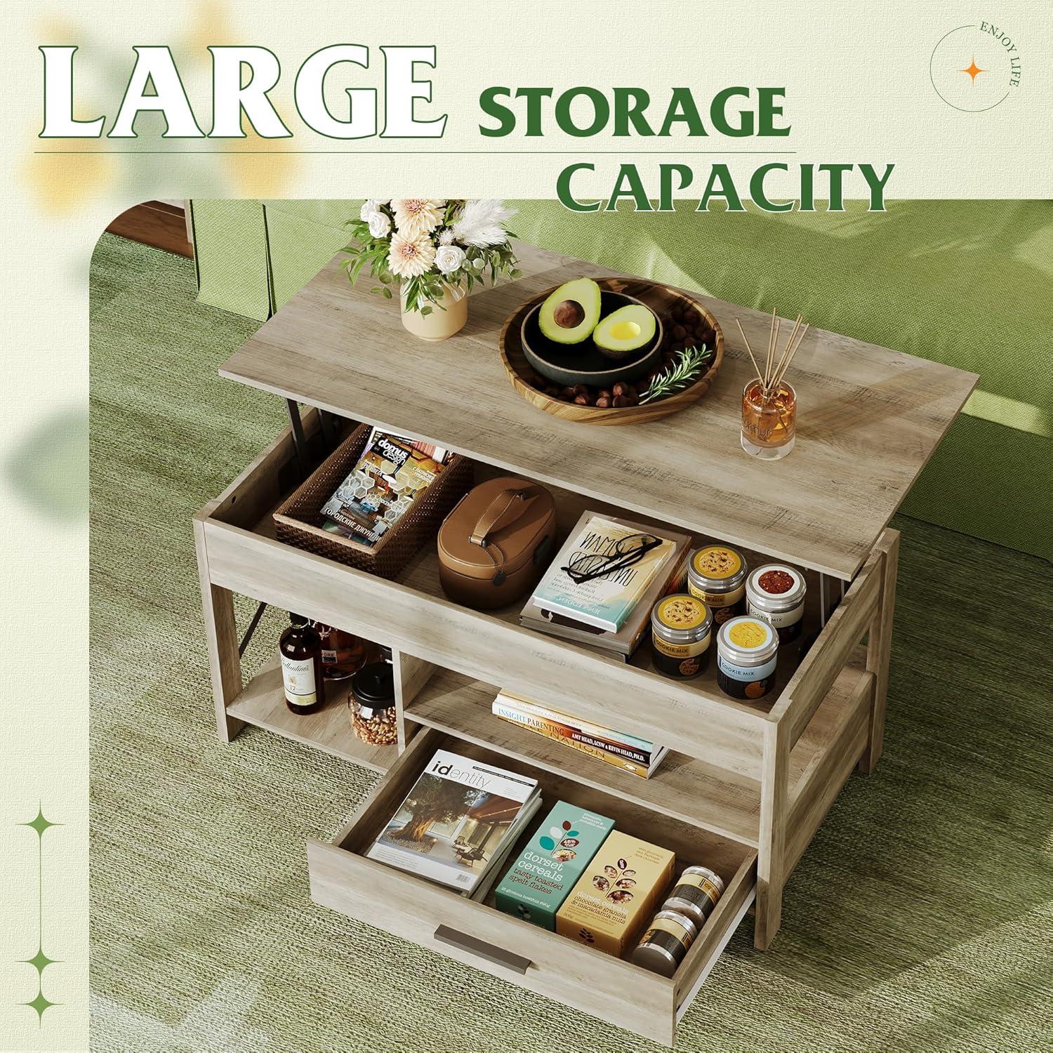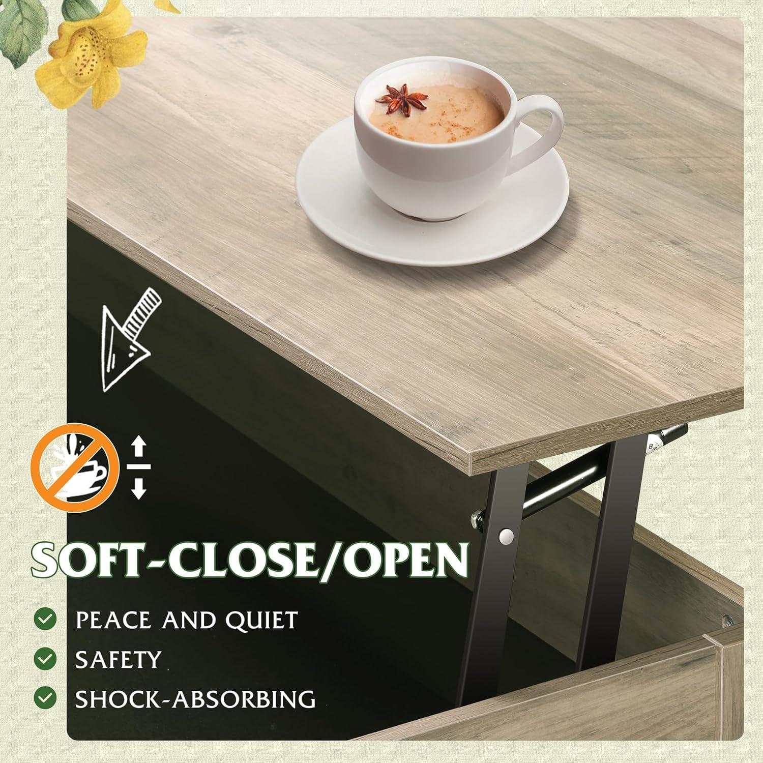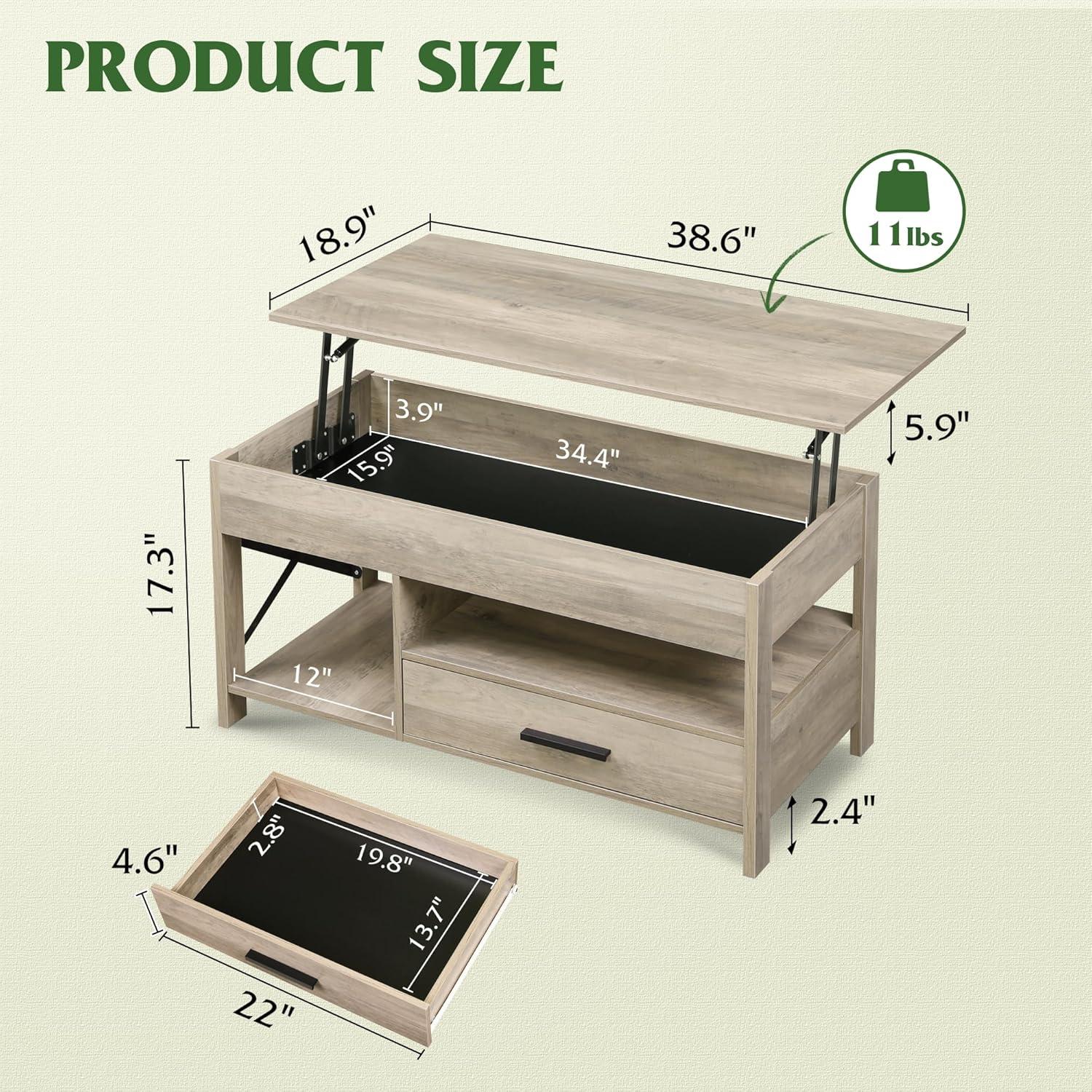 WLIVE Lift Top Coffee Table, 39″ Coffee Table with Storage Drawers, Hidden Compartment, Wooden Lift Tabletop Center Table for Living Room, Home, Rustic Oak(Grey)