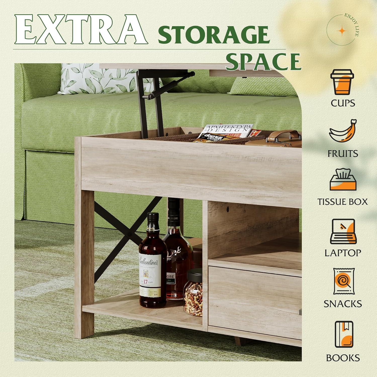 Versatile Lift-Top Design: Tired of straining over low coffee tables? This adjustable lift top coffee table transforms from a sleek surface (17.9″H) to a comfortable workspace with one smooth motion—ideal for laptops, snacks, or hobbies.