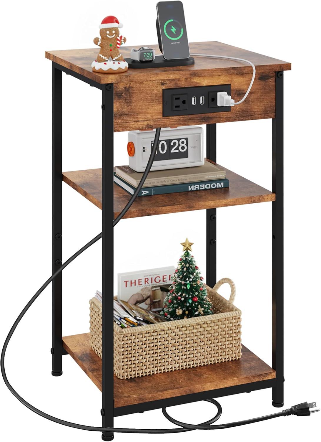 【Easy-Charging】This small end table has 2 AC outlets and 2 USB ports. The spacing is sufficient, which satisfies you to use multiple plugs simultaneously, keeping power at your fingertips and never worrying about charging when you use your electronic devices on the couch.