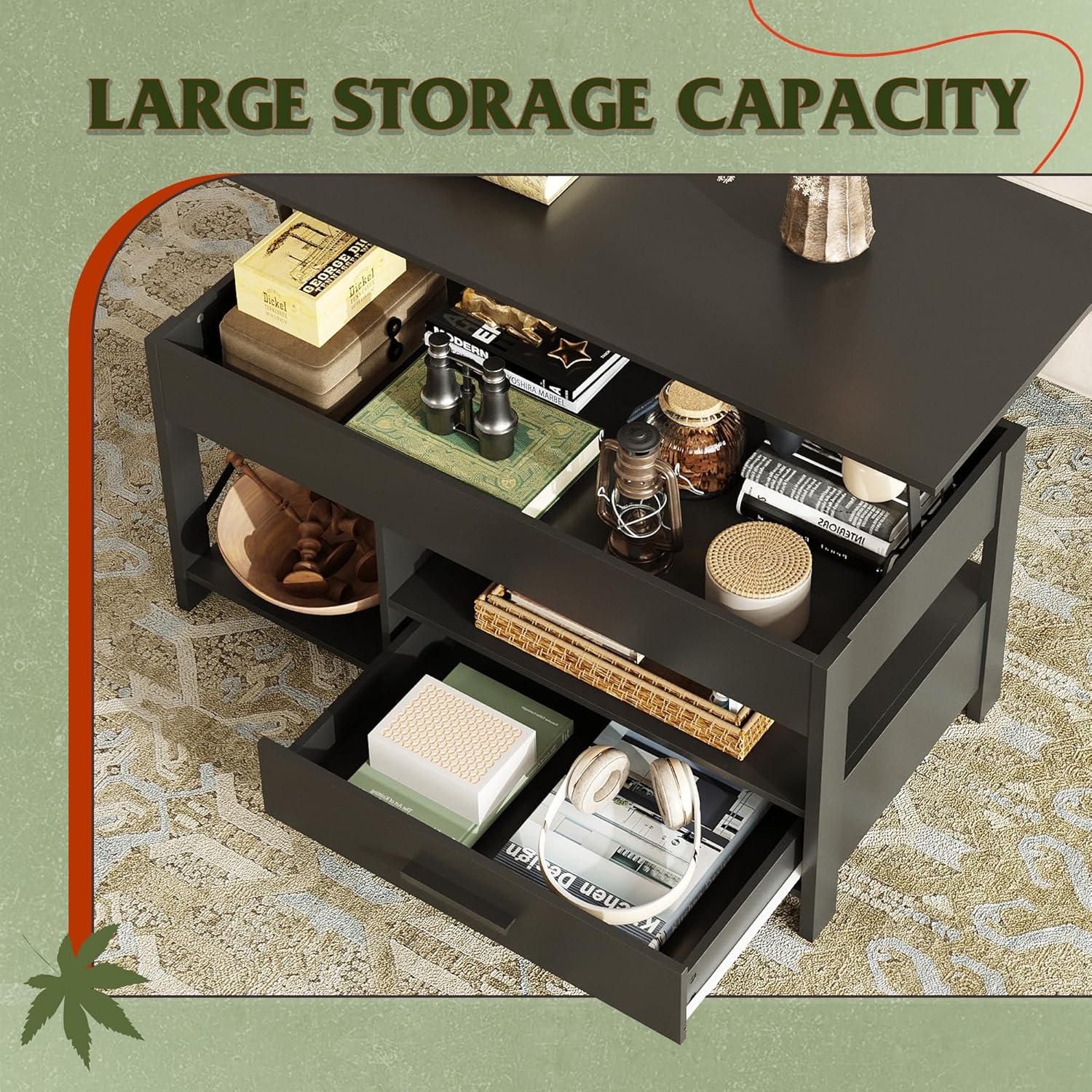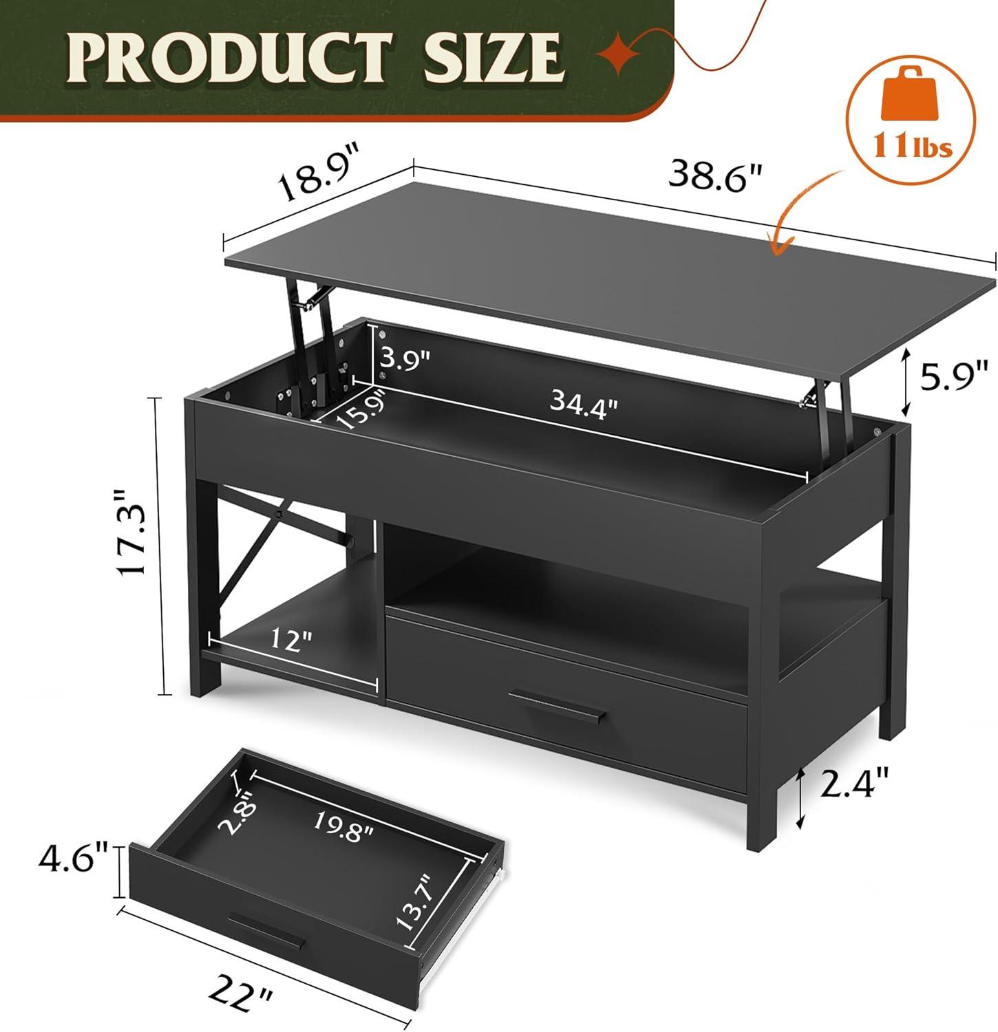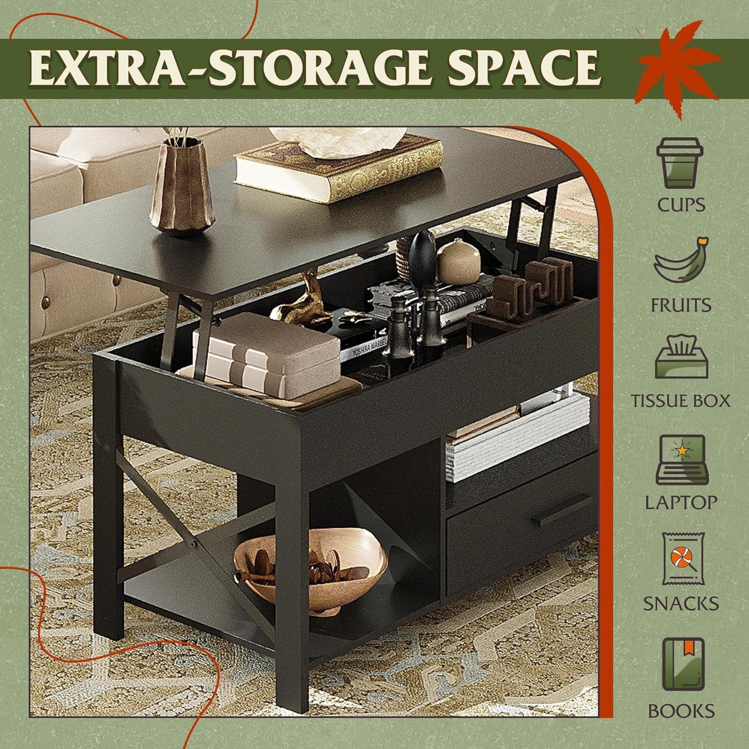 【Spacious Storage】There are 2 hidden storage compartments under the living room coffee table lifting top and sliding top, which can store laptops, magazines, remote controls and gamepads, etc., so that all items are in order. The coffee table with storage can prevent children or your pets from knocking items on the floor.
