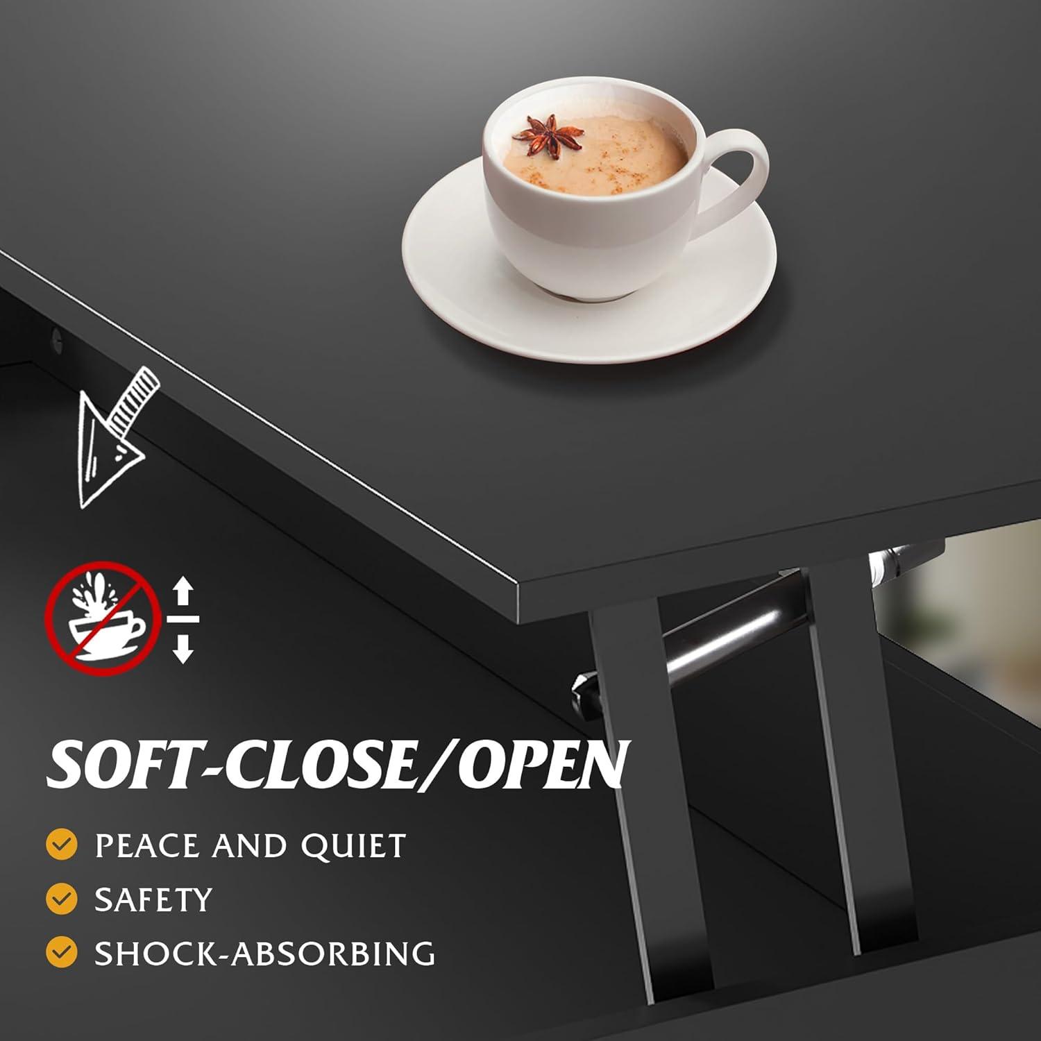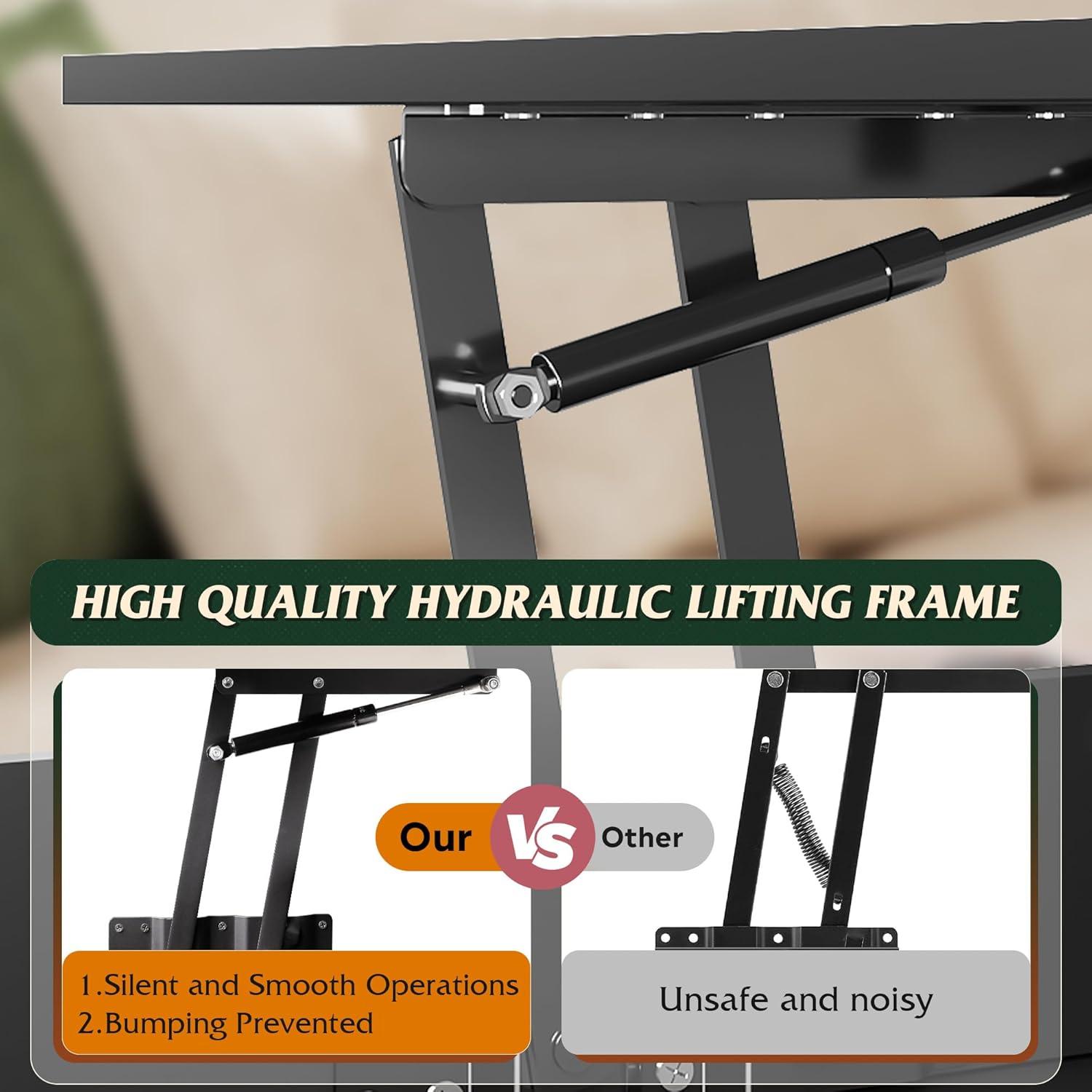 【Lift Top & Soft-Close Design】WLIVE lift top coffee table desktop can reach a height of 27″ after being raised. The comfortable height is suitable for matching with the sofa, creating a spacious workspace or dining table for you, and there is a lot of leg room. The coffee table lifting device adopts soft-closing design, which is quiet, safe, shock-absorbing and flexible.