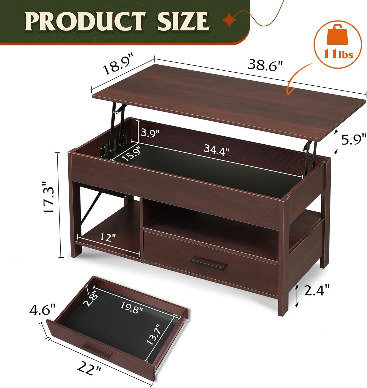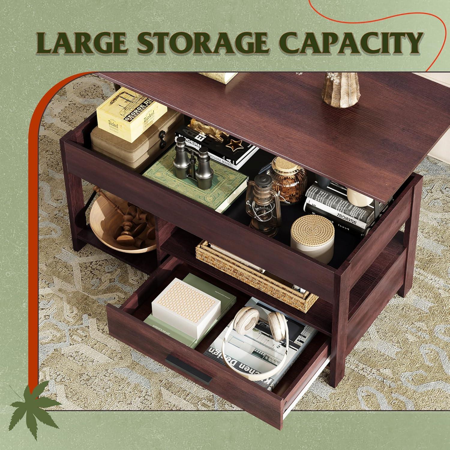 WLIVE Lift Top Coffee Table with Storage, 40.9" Coffee Table with Lifting Top & Sliding Cover, Wood Modern Center Table with 2 Hidden Compartment for Living Room, Retro Brown(Espresso)