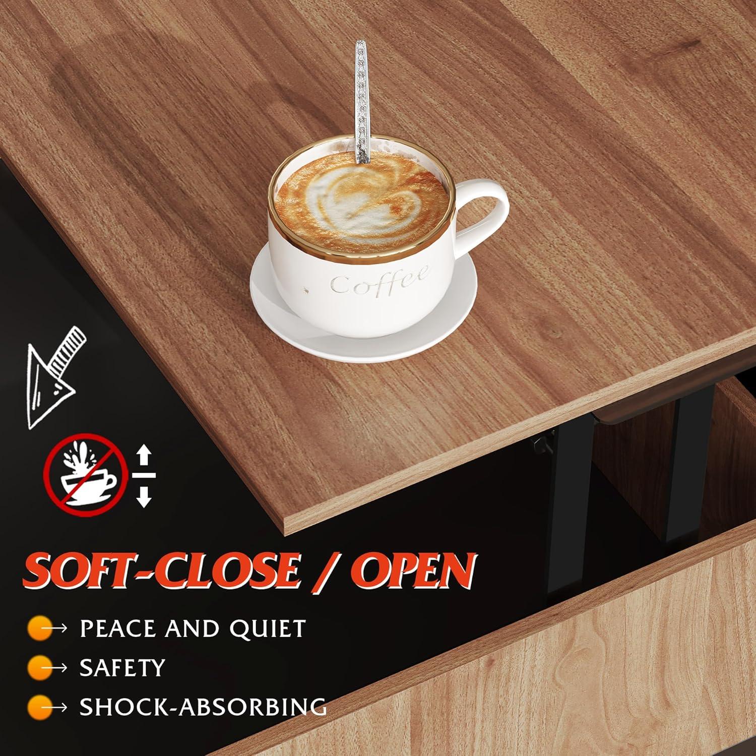 【Spacious Storage】There are 2 hidden storage compartments under the living room coffee table lifting top and sliding top, which can store laptops, magazines, remote controls and gamepads, etc., so that all items are in order. The coffee table with storage can prevent children or your pets from knocking items on the floor.