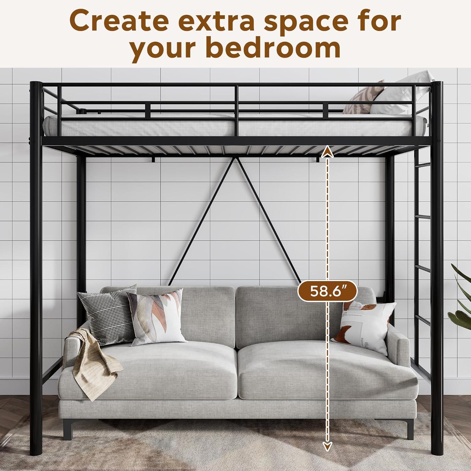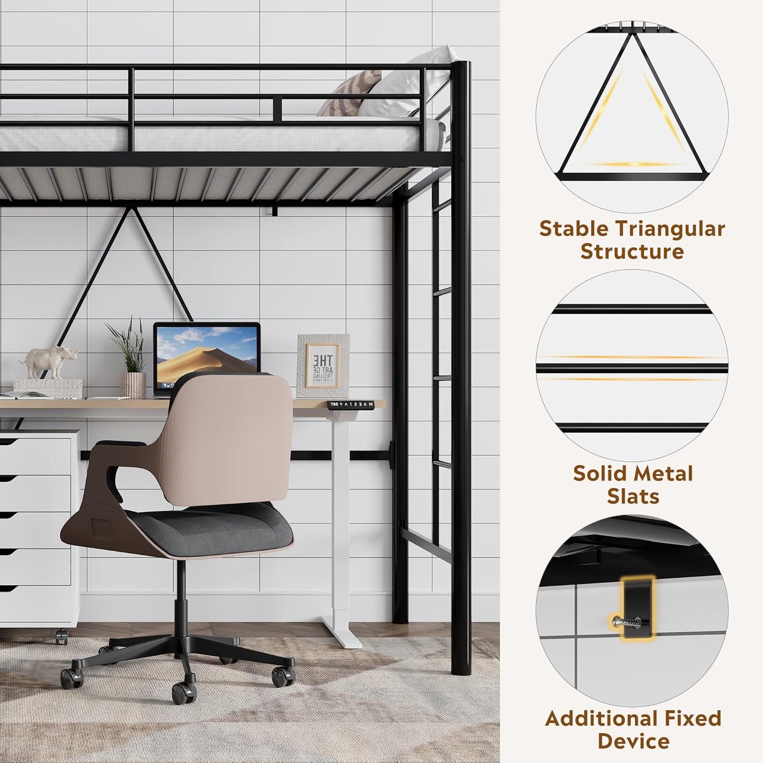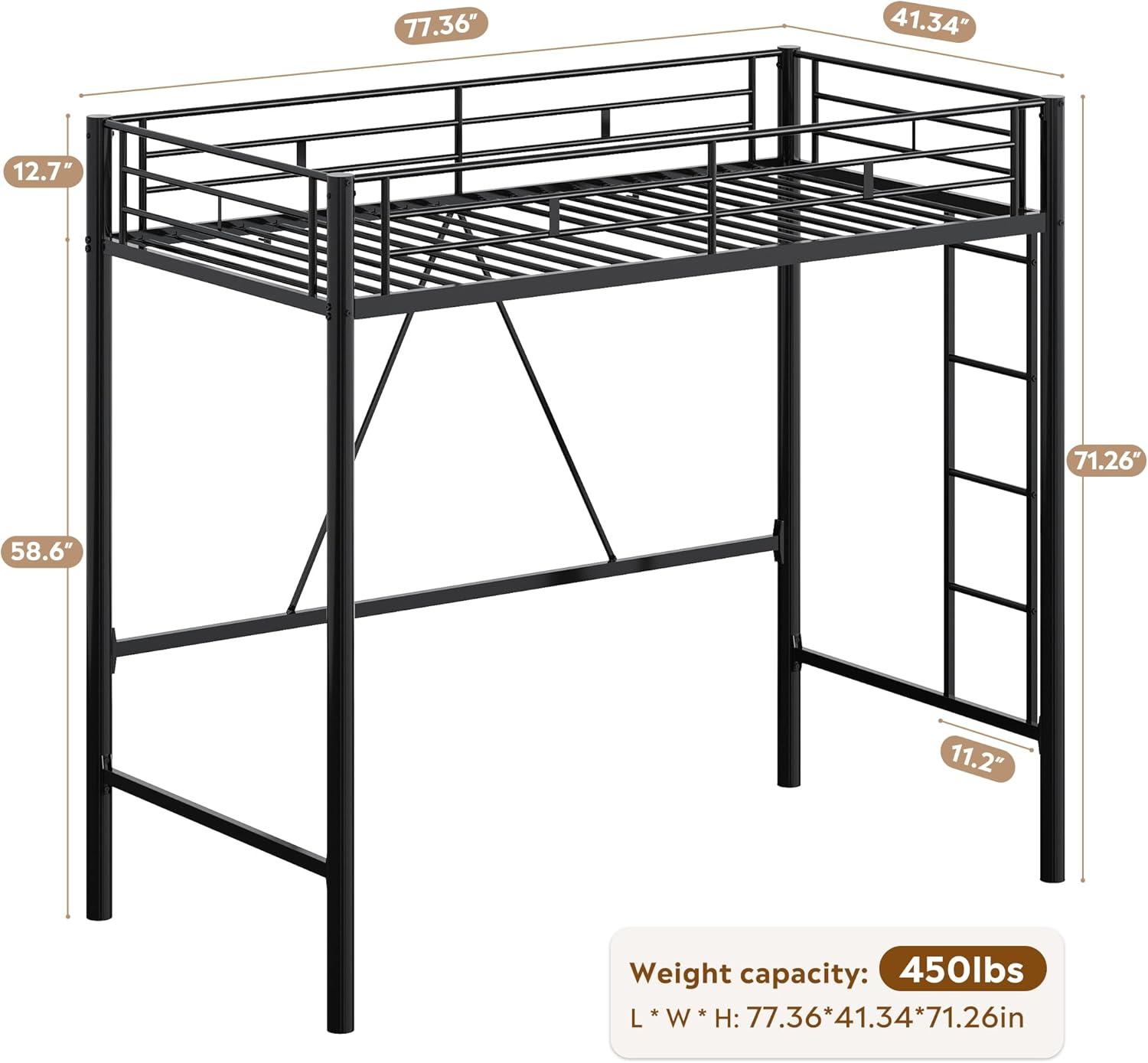 【✨ Heavy-Duty Support】Crafted with thickened steel, this twin loft bed supports up to 450 lbs, ideal for teens and adults. The unique triangular reinforcement system with wall-locking mechanisms ensures even weight distribution and enhanced stability.