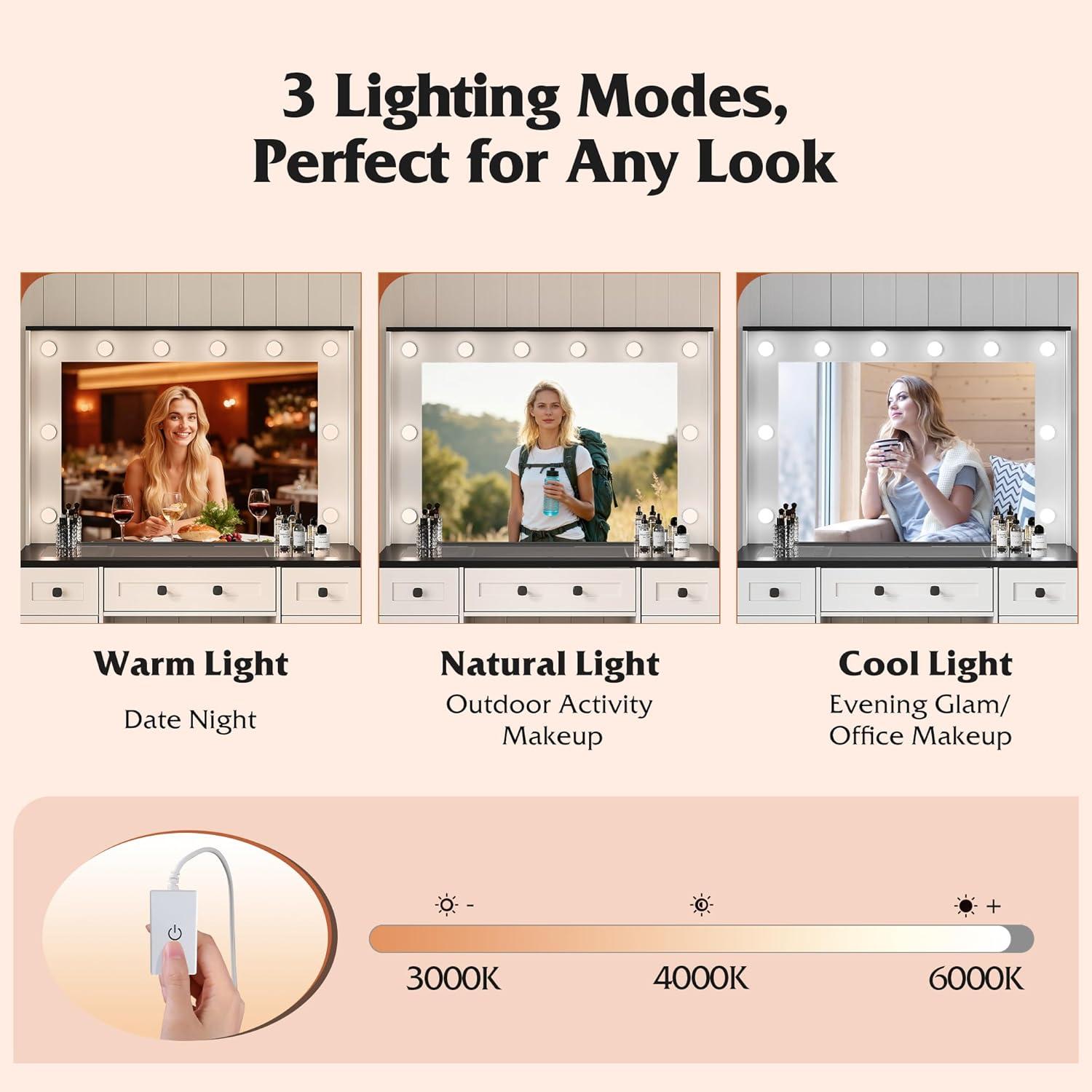 【Assemble Required】This vanity with mirror and lights comes with all parts clearly labeled and an easy-to-follow manual. You can assemble your new dressing table step-by-step with confidence, getting it ready for use in no time.