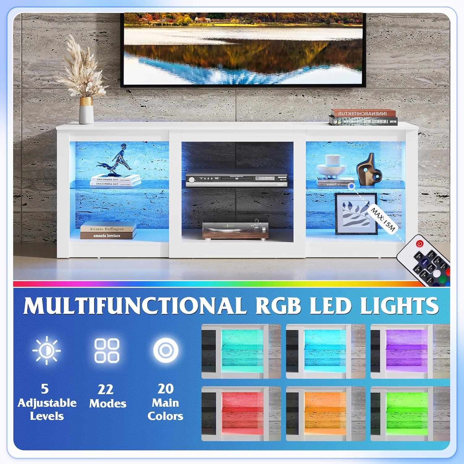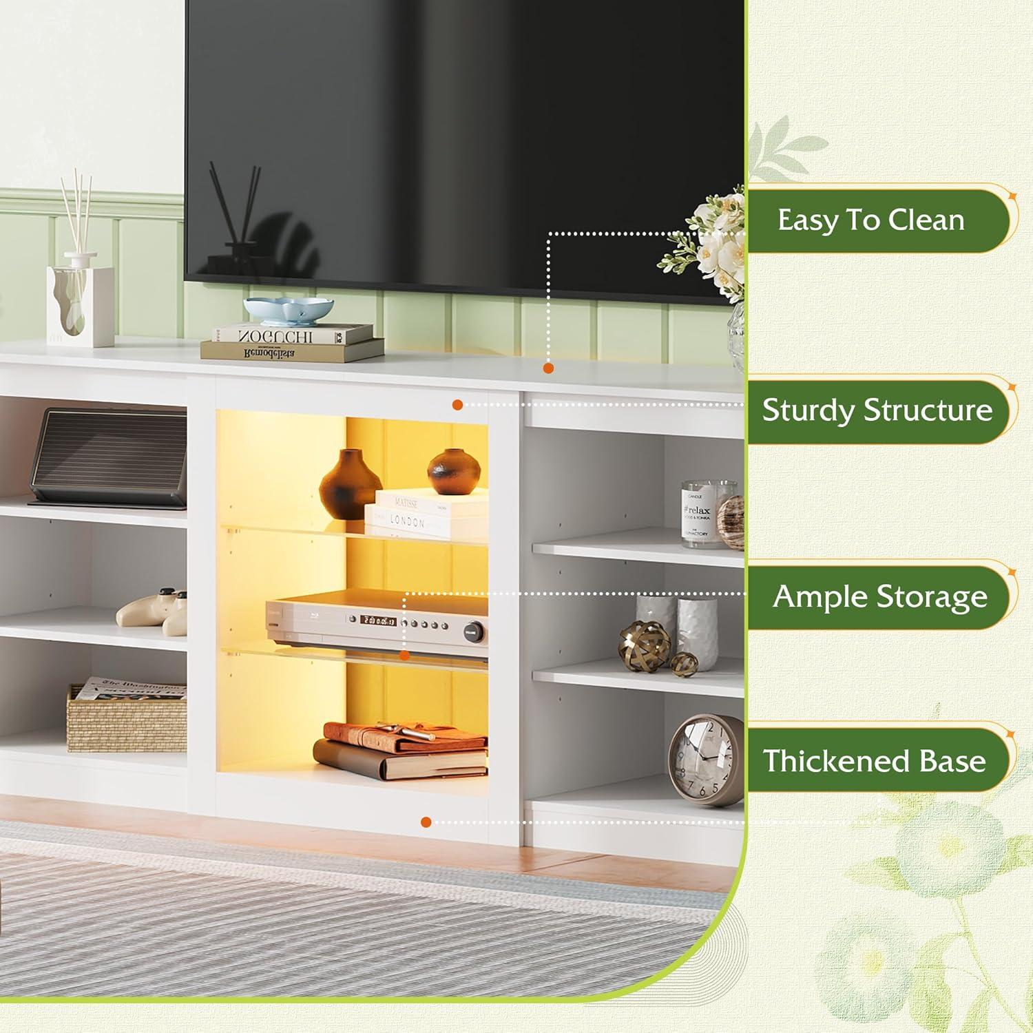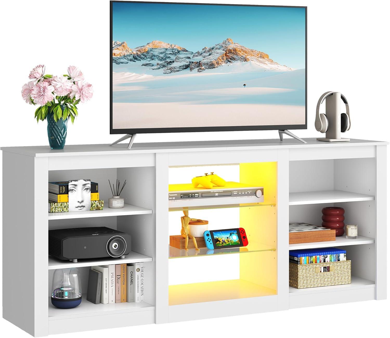 WLIVE Modern TV Stand for 65 Inch TV, Entertainment Center with Adjustable Open Shelves & LED Lights, Sturdy Media Console for Living Room, Bedroom,Gaming (White)(White)