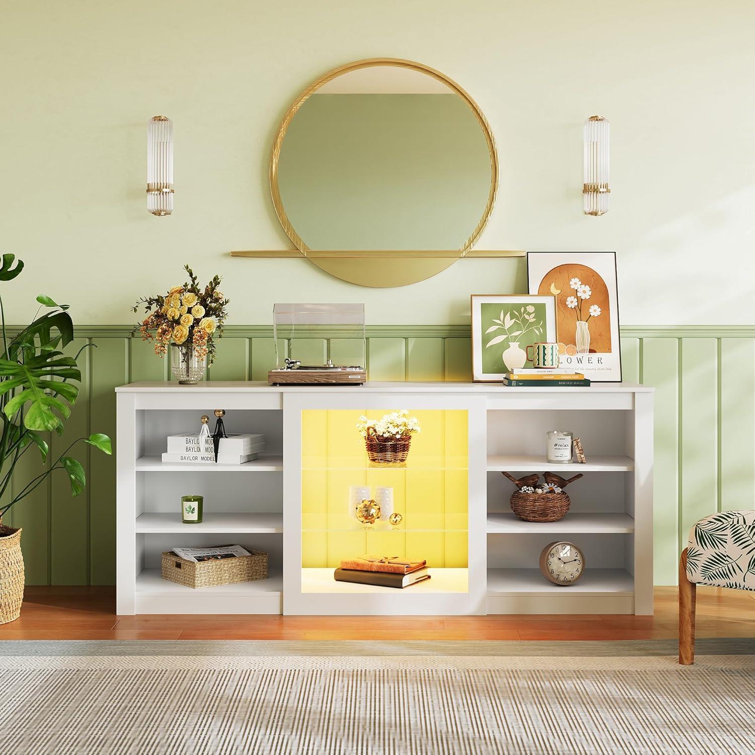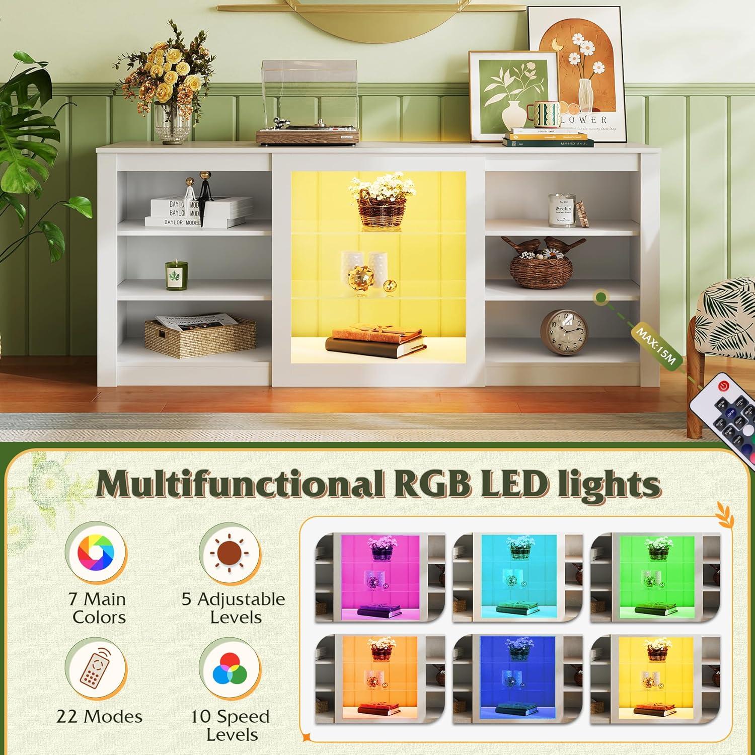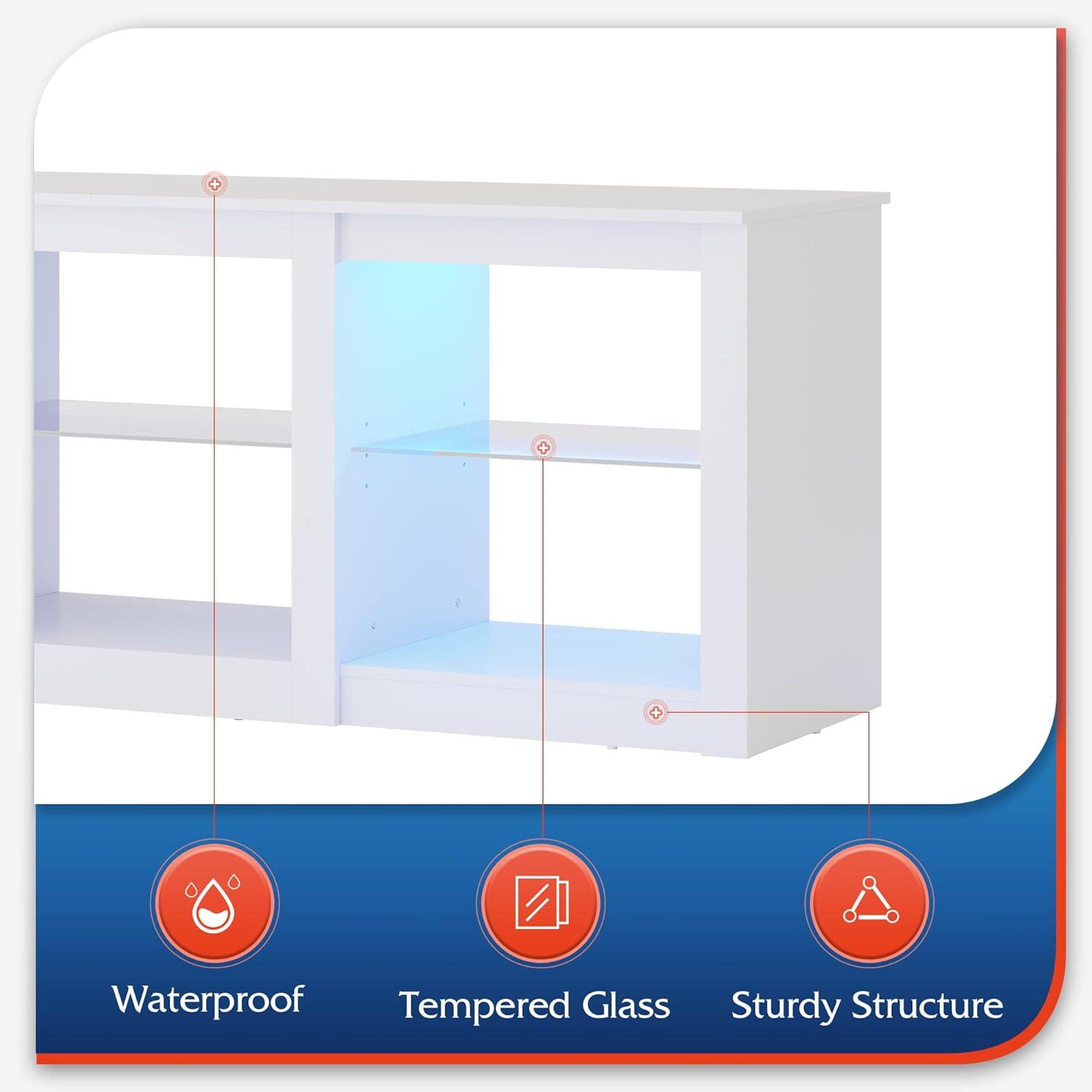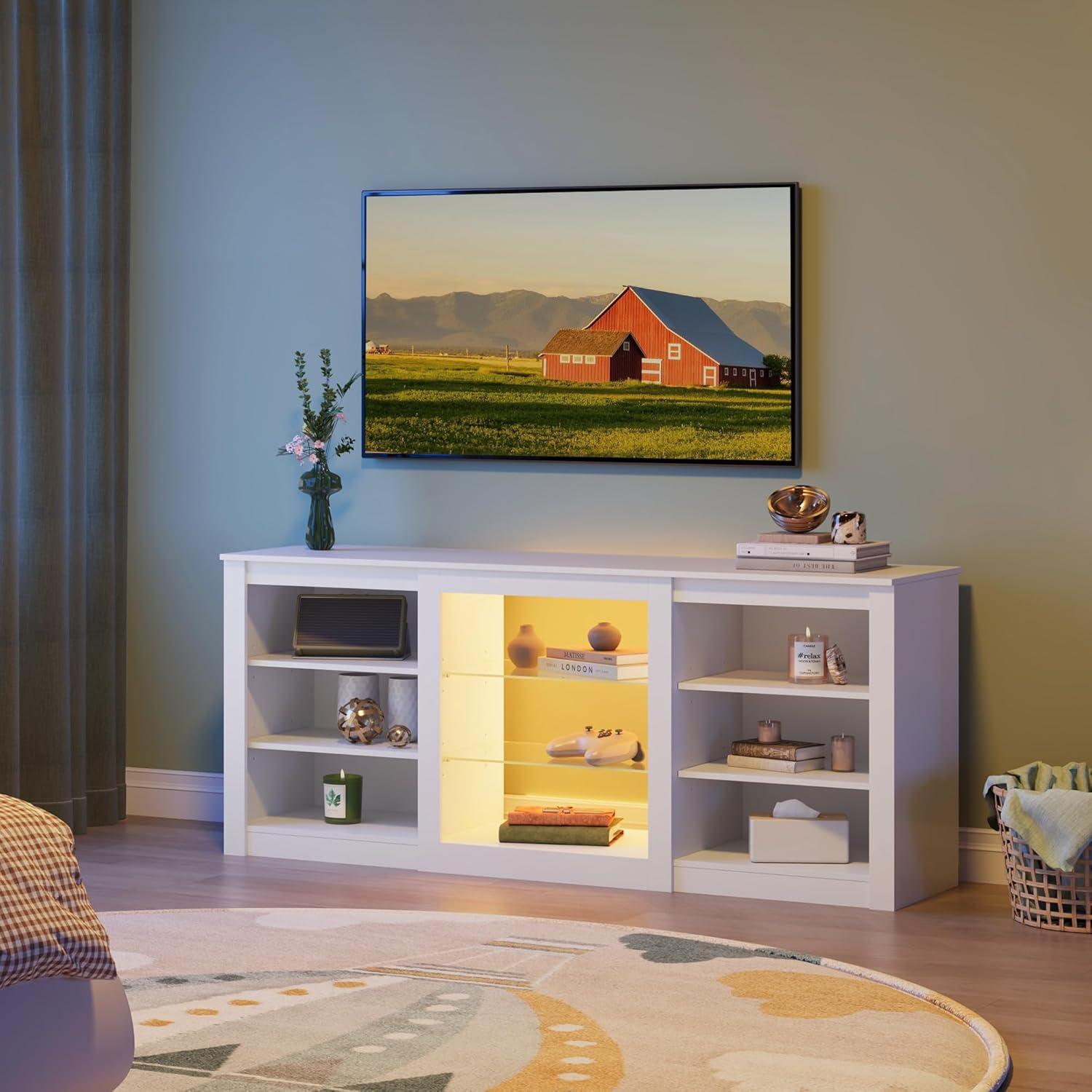 WLIVE Modern TV Stand for 65 Inch TV, Entertainment Center with Adjustable Open Shelves & LED Lights, Sturdy Media Console for Living Room, Bedroom,Gaming (White)(White)