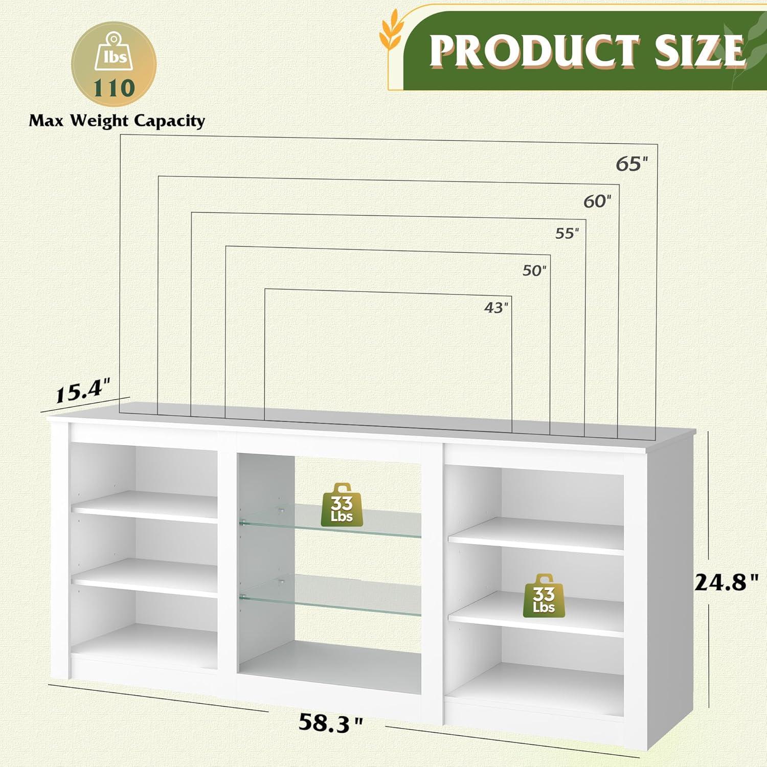 📺Keep Your Space Tidy & Calm:Features a modern design with smooth, clean lines.58.3”W size fits 55/60/65” TVs perfectly; this tall white media console fits comfortably in compact rooms while still offering generous storage. No more visual clutter—just a clean, peaceful living space you’ll love coming home to.