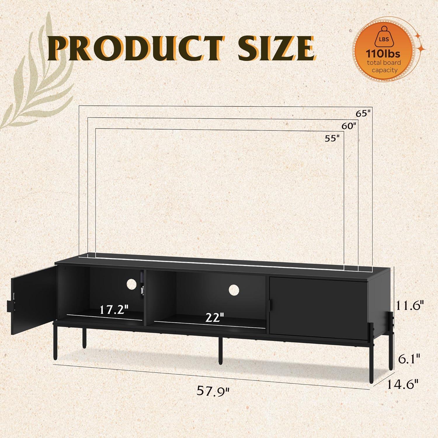 【PROPER SIZE】Overall dimension: 57.9″Lx14.6″Wx17.7″H. This WLIVE Mid Century Entainment Center is big enough to support 50”, 55” and even 60” TVs, perfect choice for modern homes