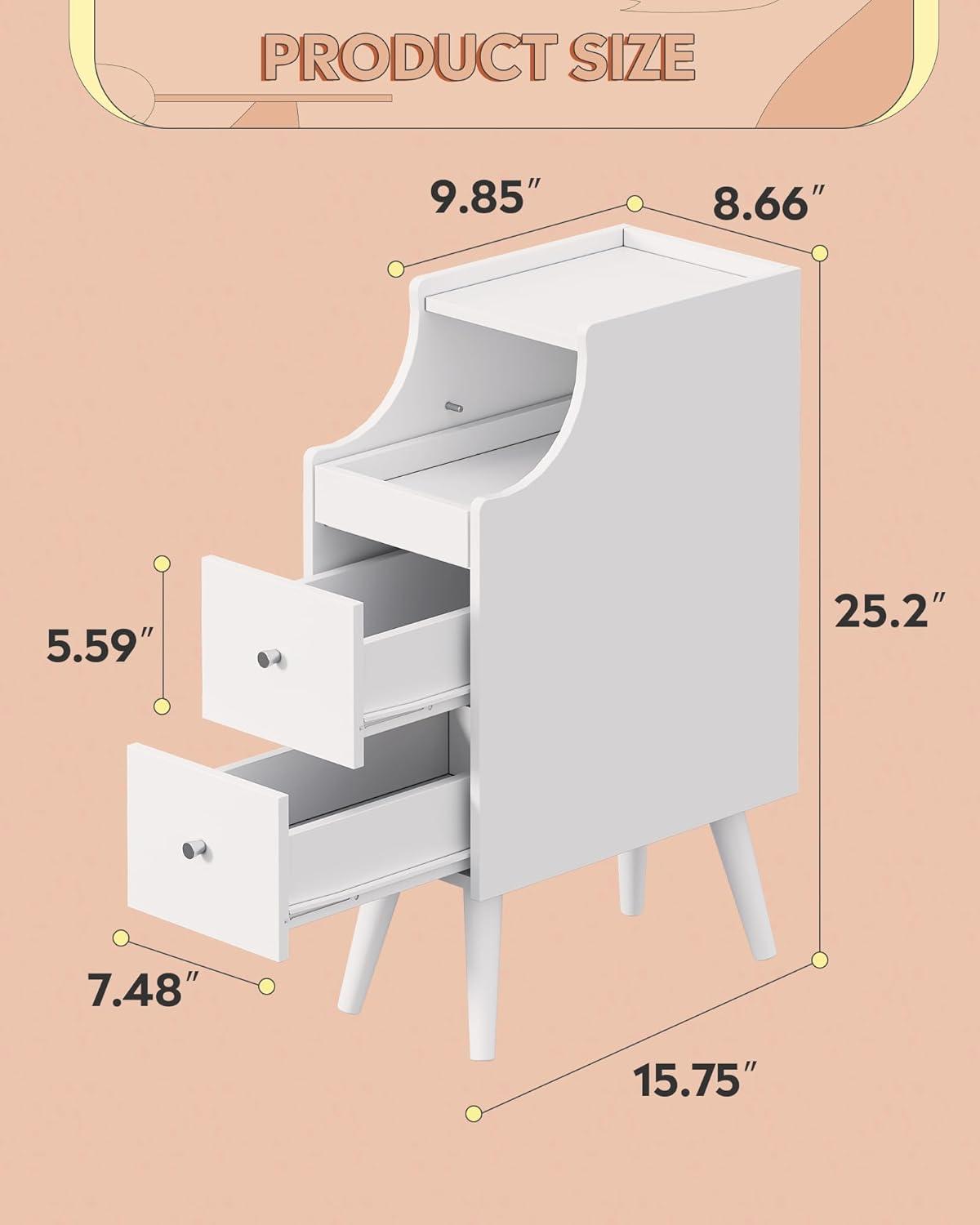 Sturdy & Durable: The bedside table measures 15.75″D × 8.66″W × 25.2″H. It’s made of high-quality wood that is durable, waterproof, and easy to clean. The sturdy tapered wooden legs help prevent wobbling and add a touch of style