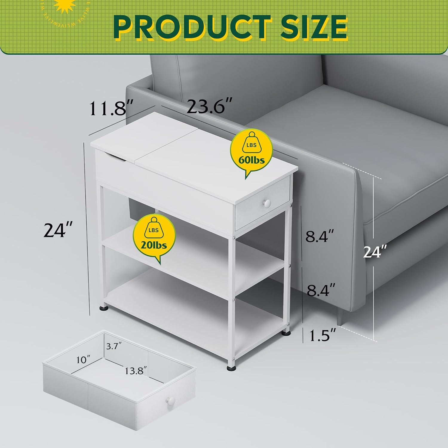 【Enough Storage】This 3-tier end table provides enough storage, you can put your items in the drawer or 2 shelves. The flip top design can be used without hurting other spaces' storage function. Morely, this nightstand can be used as a decorative table, putting some nice items outside, it will fit well with your home atmosphere.