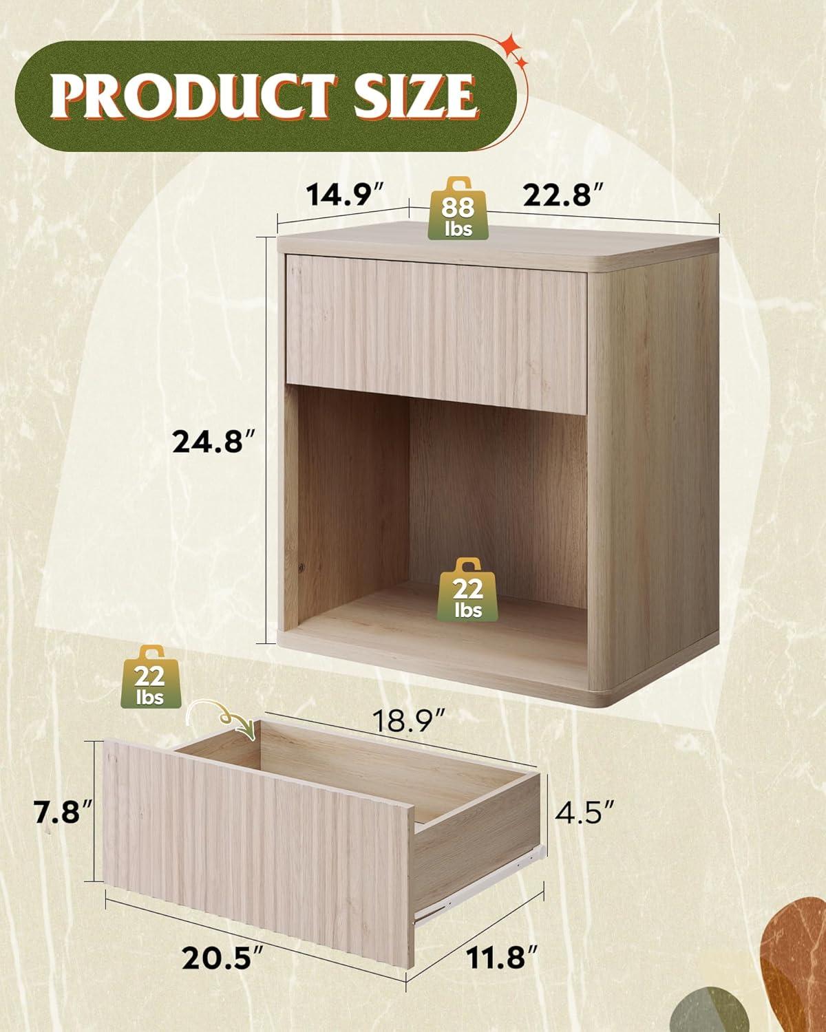 【Durable & Stable】FSC-certified engineered wood resists scratches/water. Rounded edges ensure safety, while reinforced panels create a stable floating nightstand or side table for years of use.