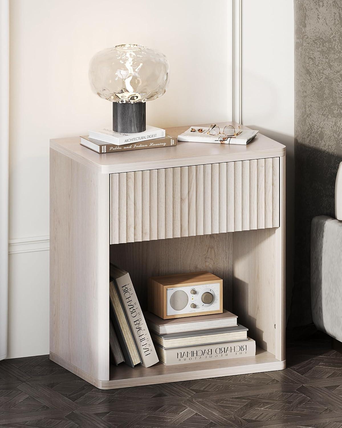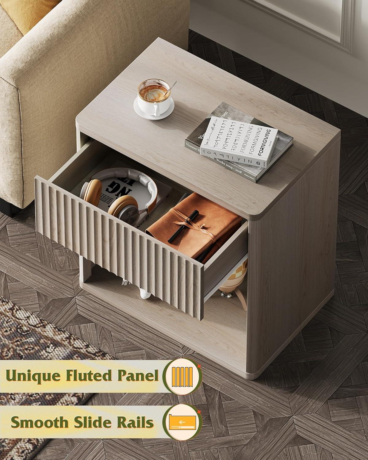 【Mid-Century Night Stand】This fluted nightstand blends retro charm with contemporary style. Its mid century modern design features clean lines and a sleek drawer front, perfect as a bedroom nightstand or end table for any décor.