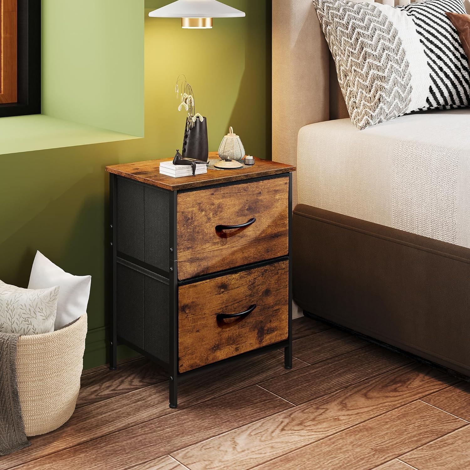 WLIVE Night Stand, Small 2 Drawer Dresser, Nightstand with Fabric Bins for Bedroom, Closet, Dorm, Rustic Brown Wood Grain Print, 11.8" D x 15.7" W x 20.9" H(Rustic Brown)