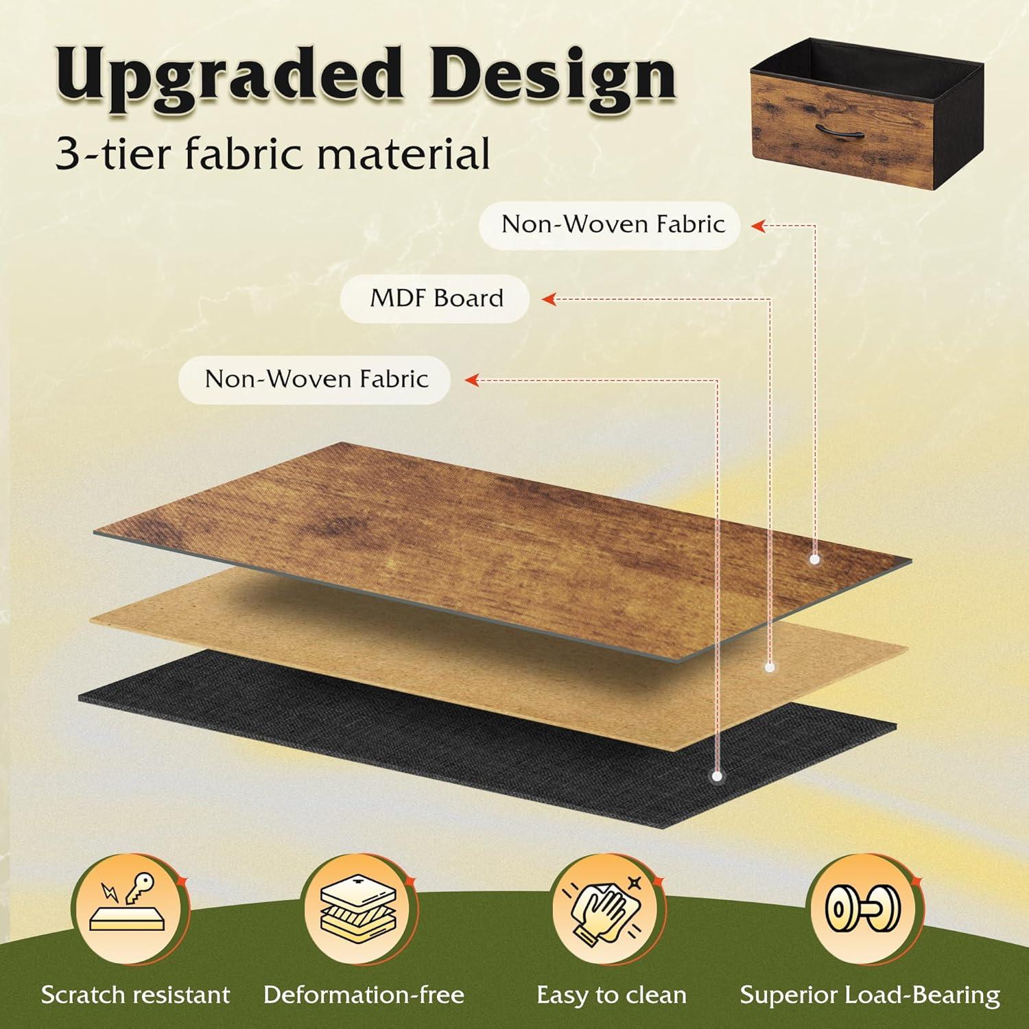 Spacious Storage: The 2 fabric drawers of the small dresser offer large storage space for nighttime necessities. The wood top is ideal to place alarm clock, phone, charger, eyeglasses, keeping them in your reach.