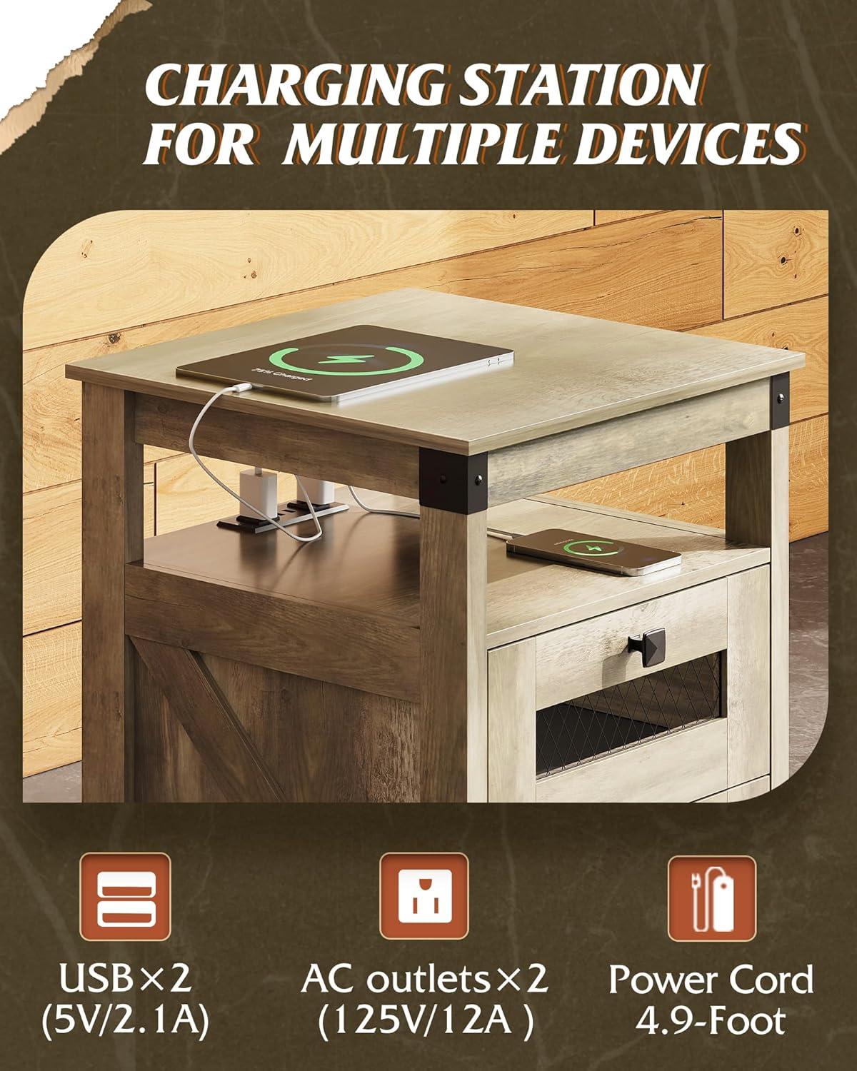 [Durable&Stable]: This wooden 2-drawer end table with charging station with smooth metal glides is made of a mixture of particleboard and frame, which has excellent durability and stability. This farmhouse bedside table can be used for a long time, unnecessary for replacement. The capacity can reach up to 22 lbs, meeting your daily basic needs