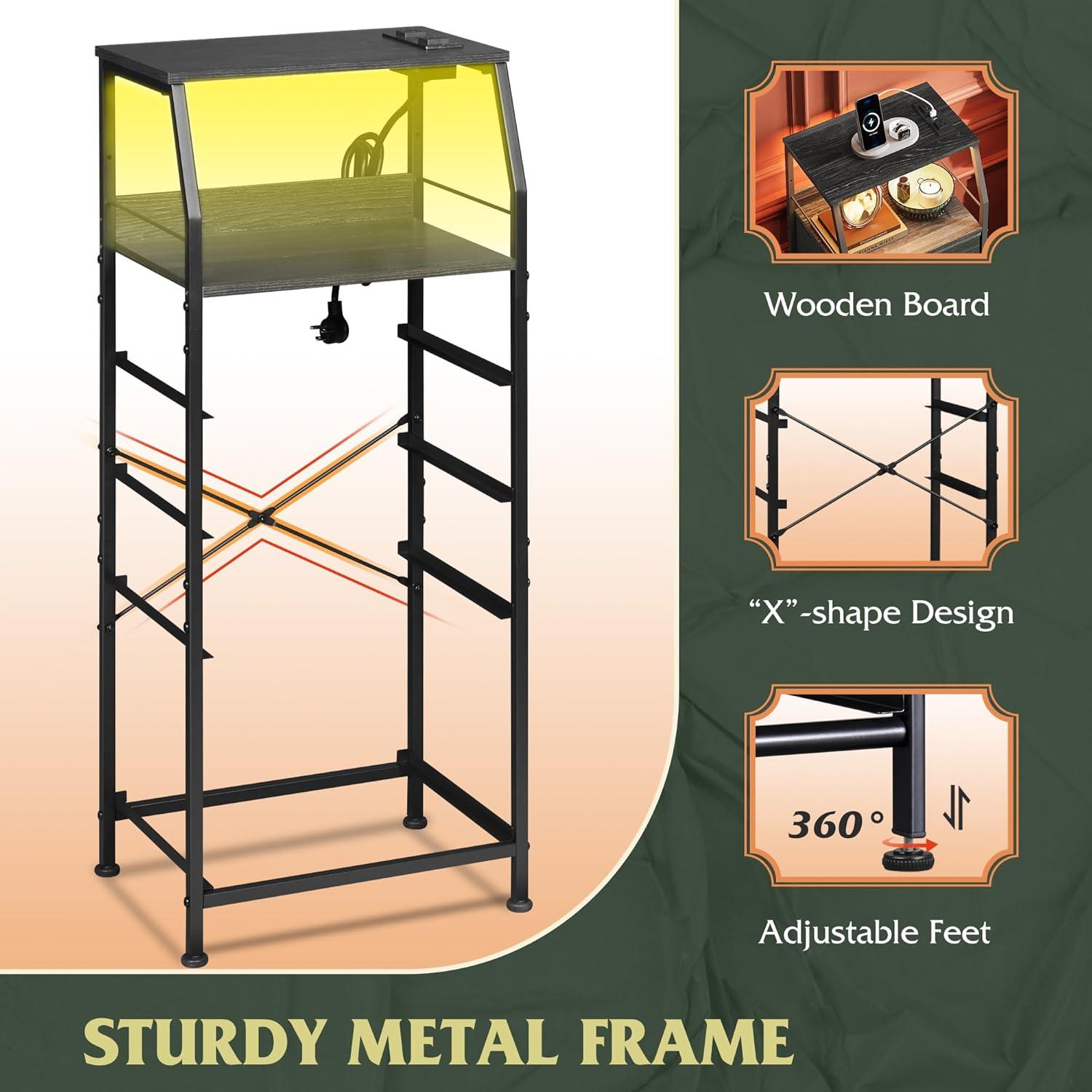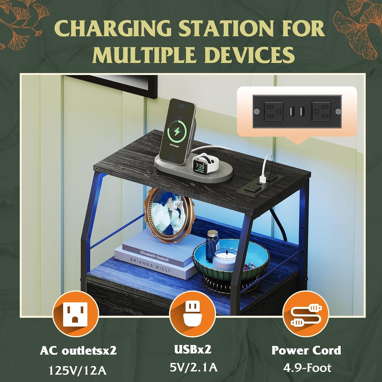[Night Stand with Charger Station]: The layout of the built-in power sockets is more convenient and user-friendly. It features a combination of 2 USB ports and 2 AC outlets to meet various charging needs. The charging station is ETL certified, so you don't need to worry about safety issues.