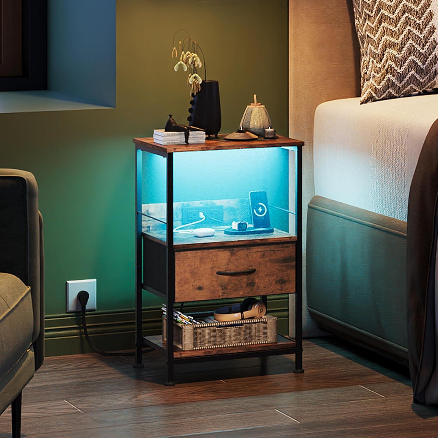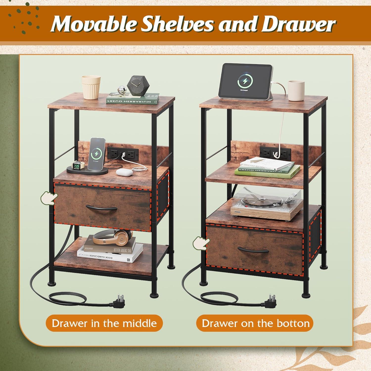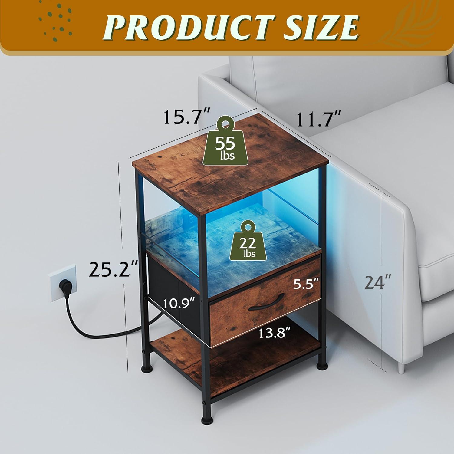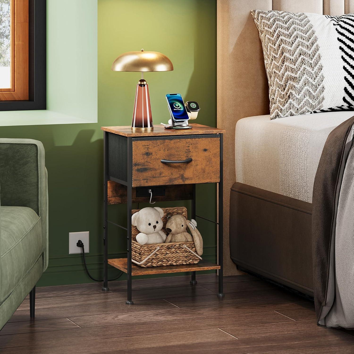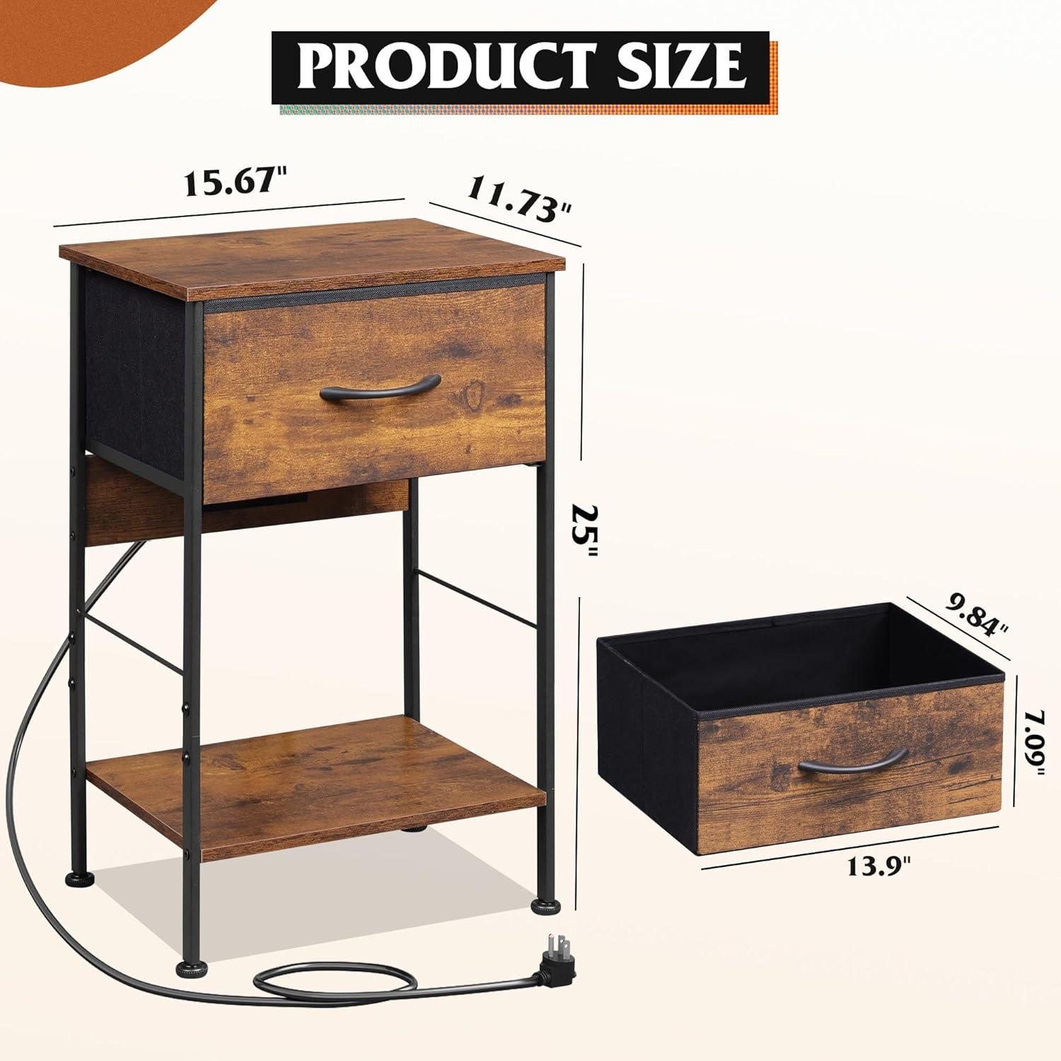 WLIVE Nightstand, Bedside Side Table for Bedroom, Dorm with Steel Frame, Night Stand End Table with Fabric Storage Drawer, Easy Assembly, Rustic Brown Wood Grain Print, 11.73''D 15.67''W 25.03" H(Rustic Brown Wood Grain Print)