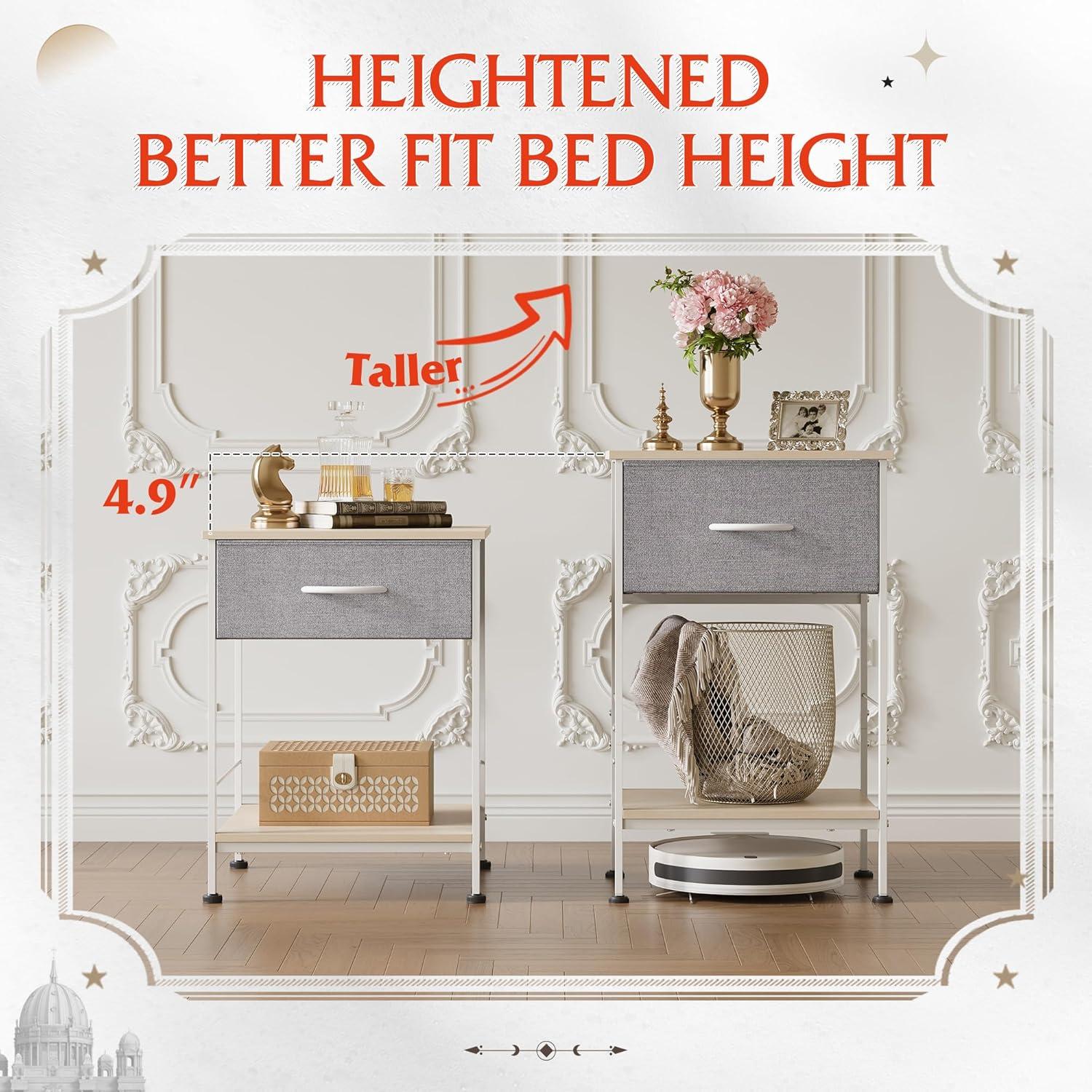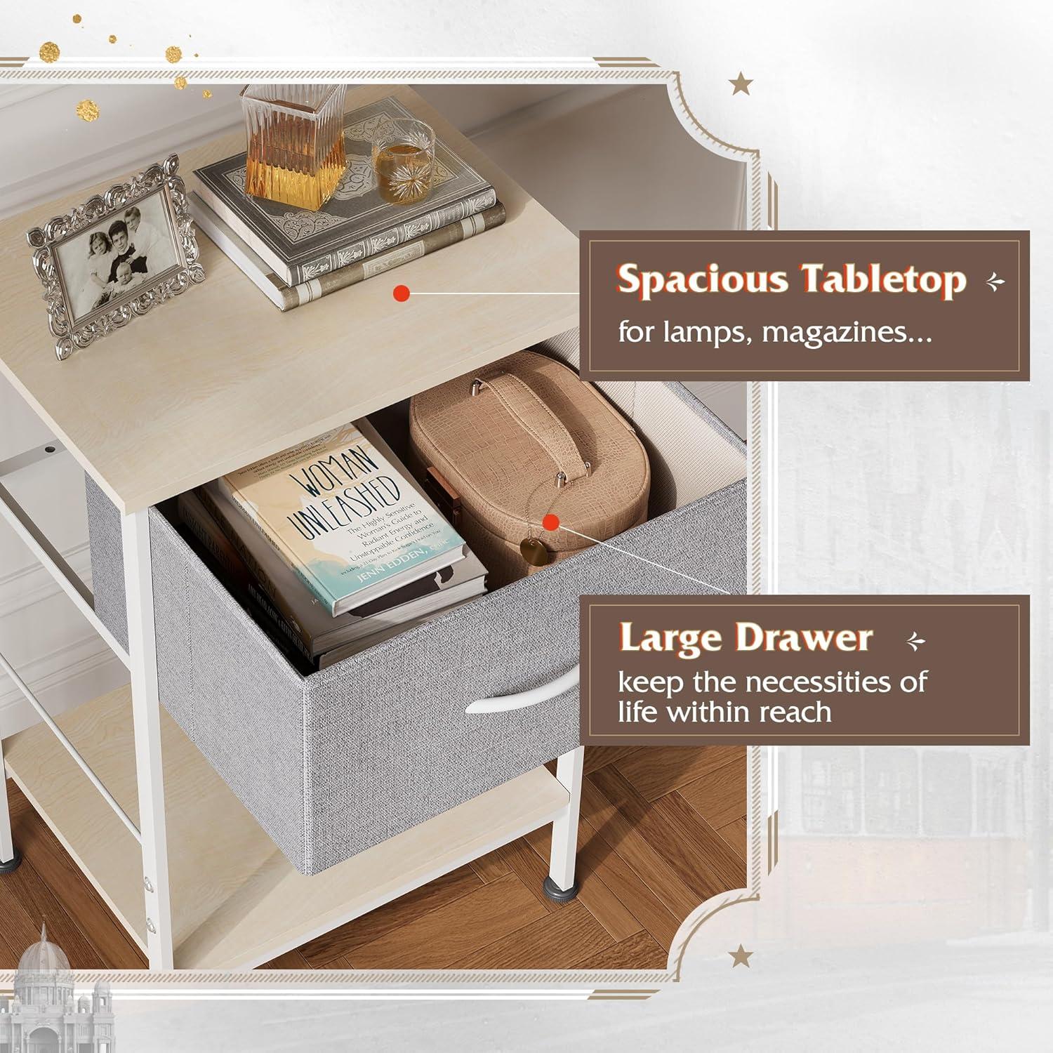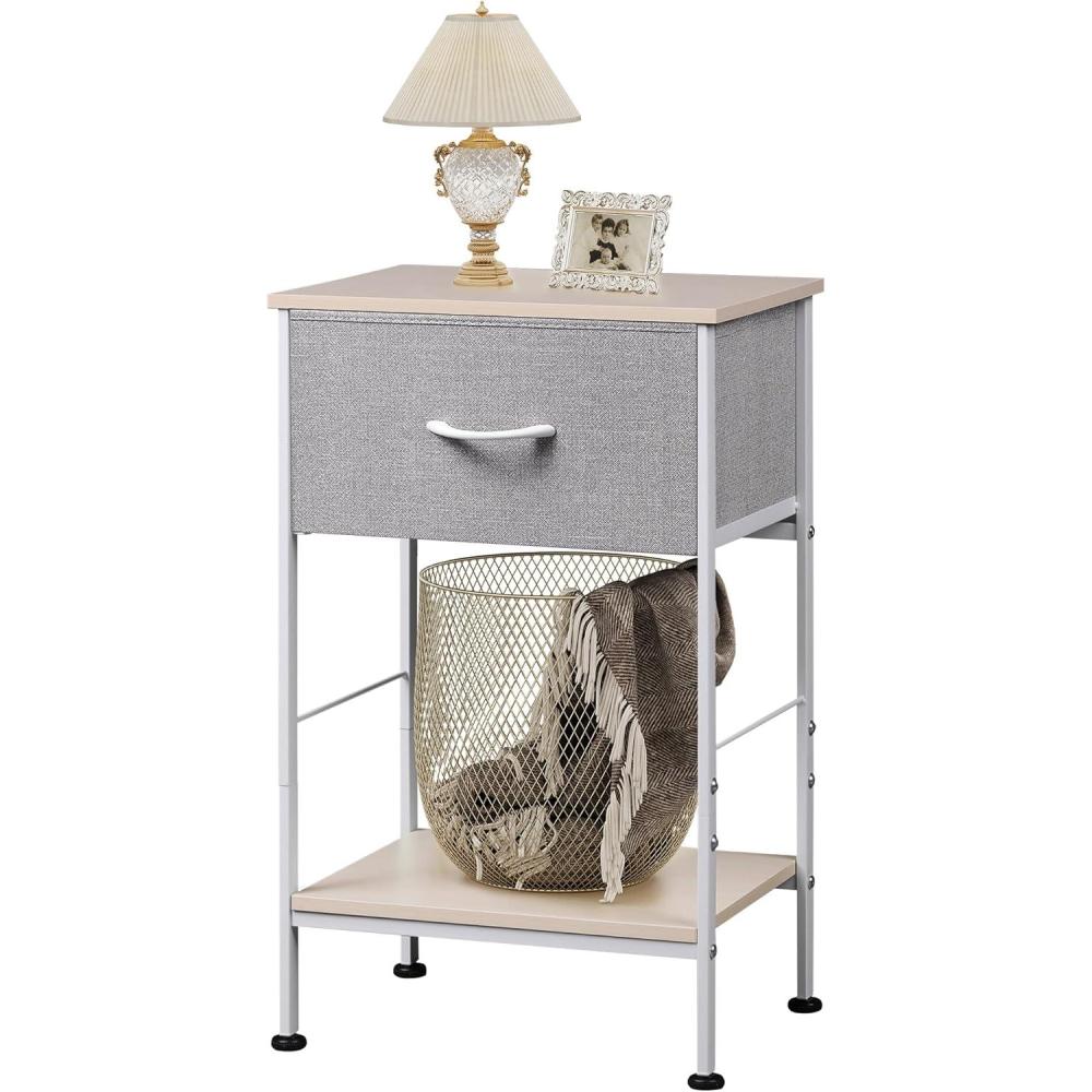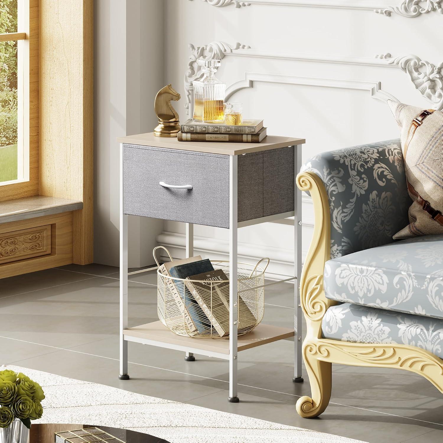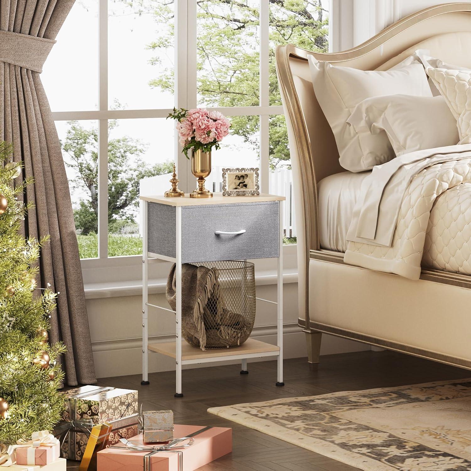 WLIVE Nightstand, End Table with Fabric Storage Drawer and Open Wood Shelf, Bedside Furniture with Steel Frame, Side Table for Bedroom, Dorm, Easy Assembly, Light Grey, 25″ Height, ASNG086LGR