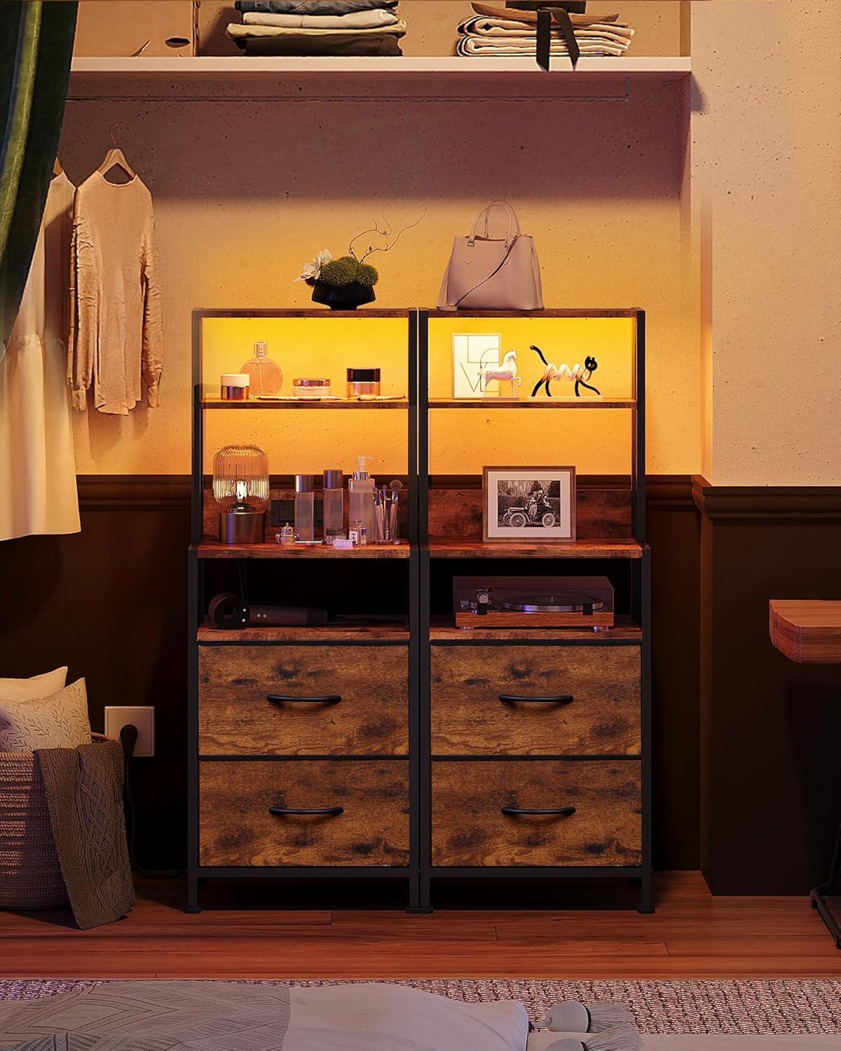 [LED Nightstand] 6,000+ LED Color Options with Dimmable Brightness, this fabric dresser create your perfect makeup lighting for flawless application every morning. Sync with Bluetooth music via app for a glam-ready mood.