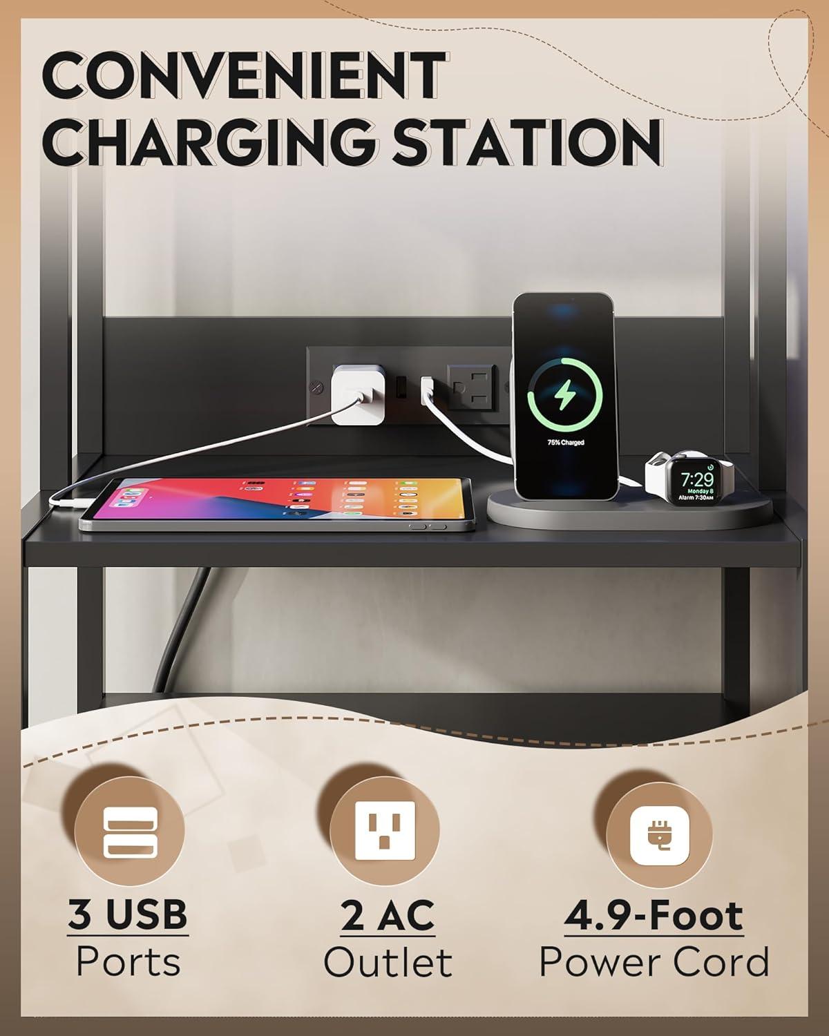 [Built-in Power Set] The nightstand with charging station includes 3 USB ports and 2 AC outlets, allowing you to charge multiple devices simultaneously. Dedicated ports for the LED lights ensure seamless functionality.