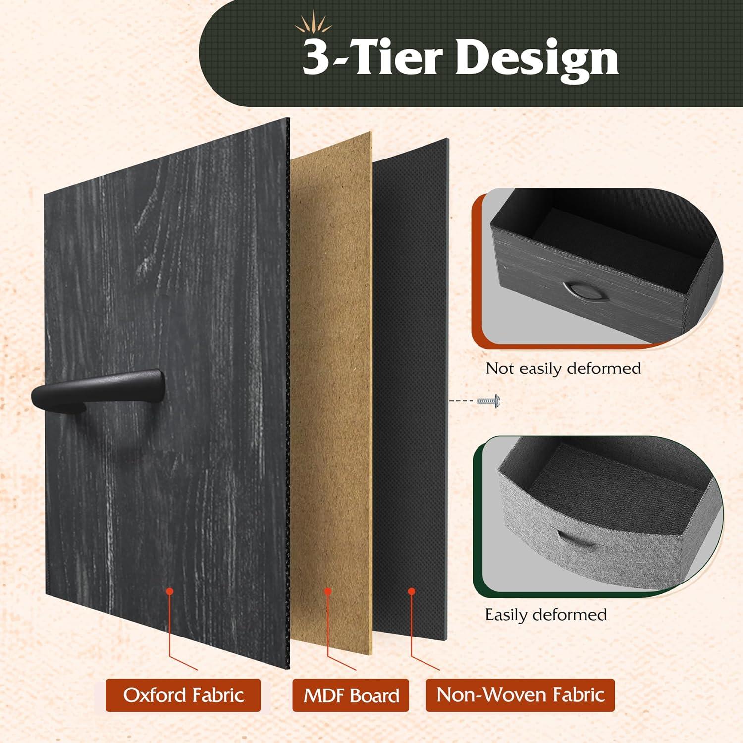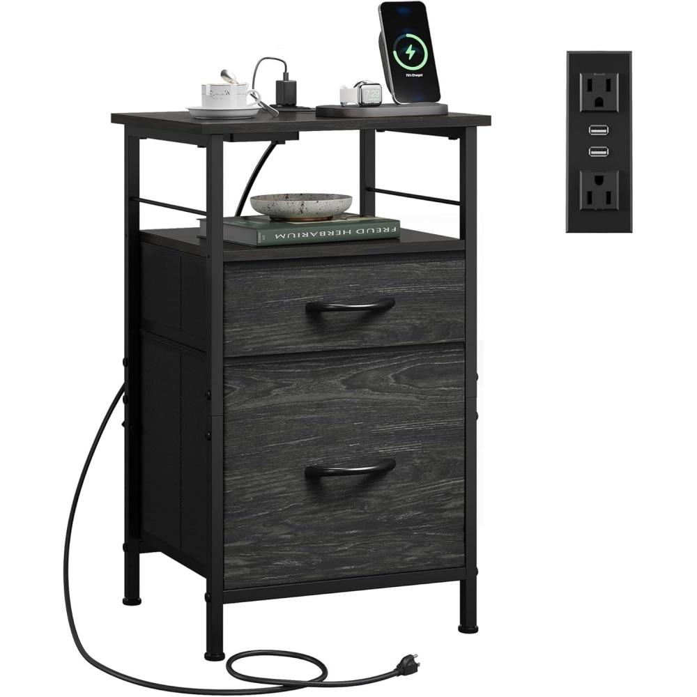 WLIVE Nightstand with Charging Station, Side Table with 2 Fabric Drawers, End Tables for Bedroom, Small Dresser, USB Ports and Outlets, Charcoal Black(Charcoal Black)