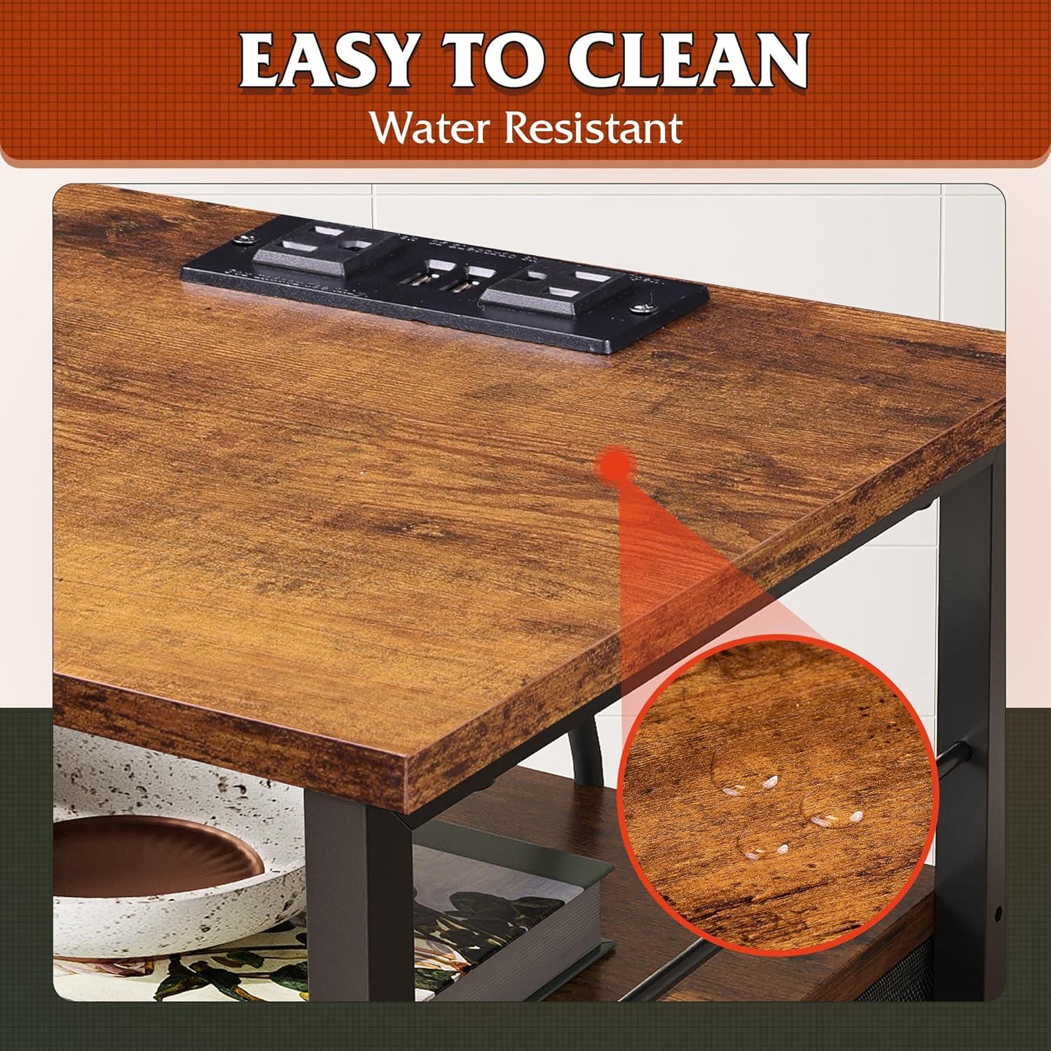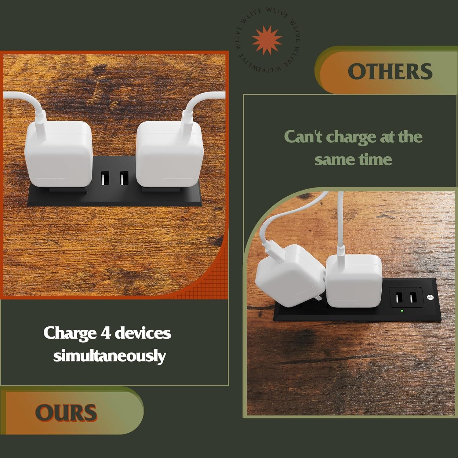 [Nightstand with Charging Station]: No electricity? Don't worry. This end table comes with 2 standard plug outlets and 2 USB ports for most electronics. The layout of outlests is just right to avoid chargers‘ mutual interference and meet your needs for charging 4 devices at the same time.
