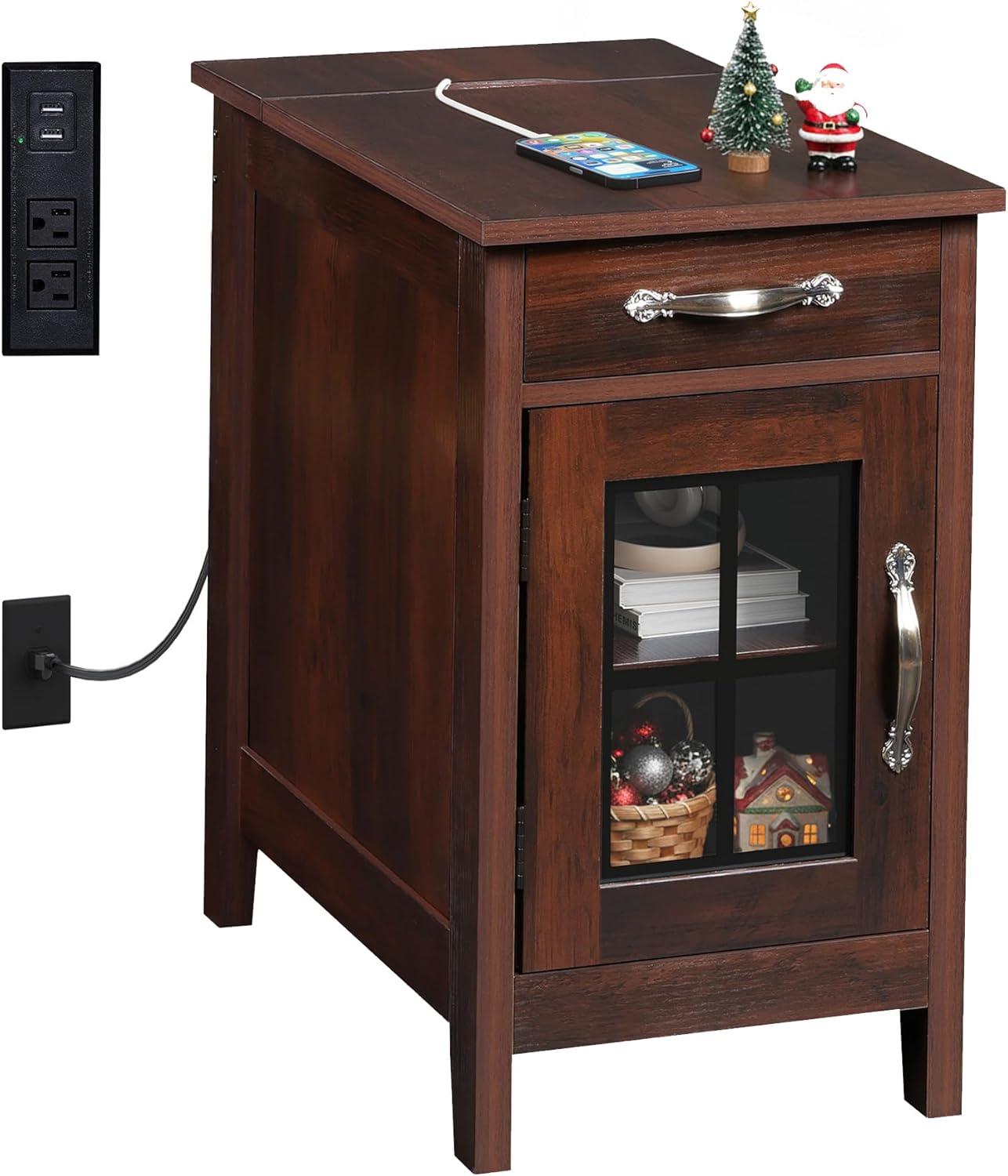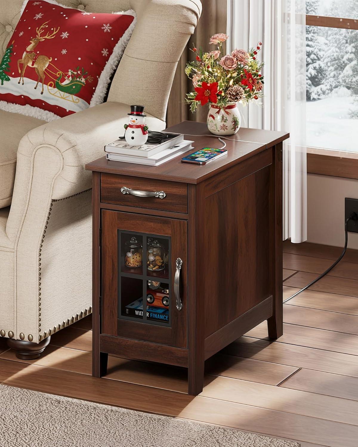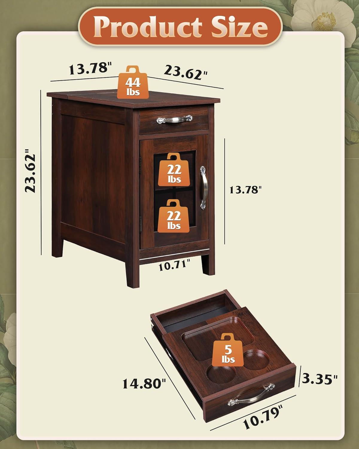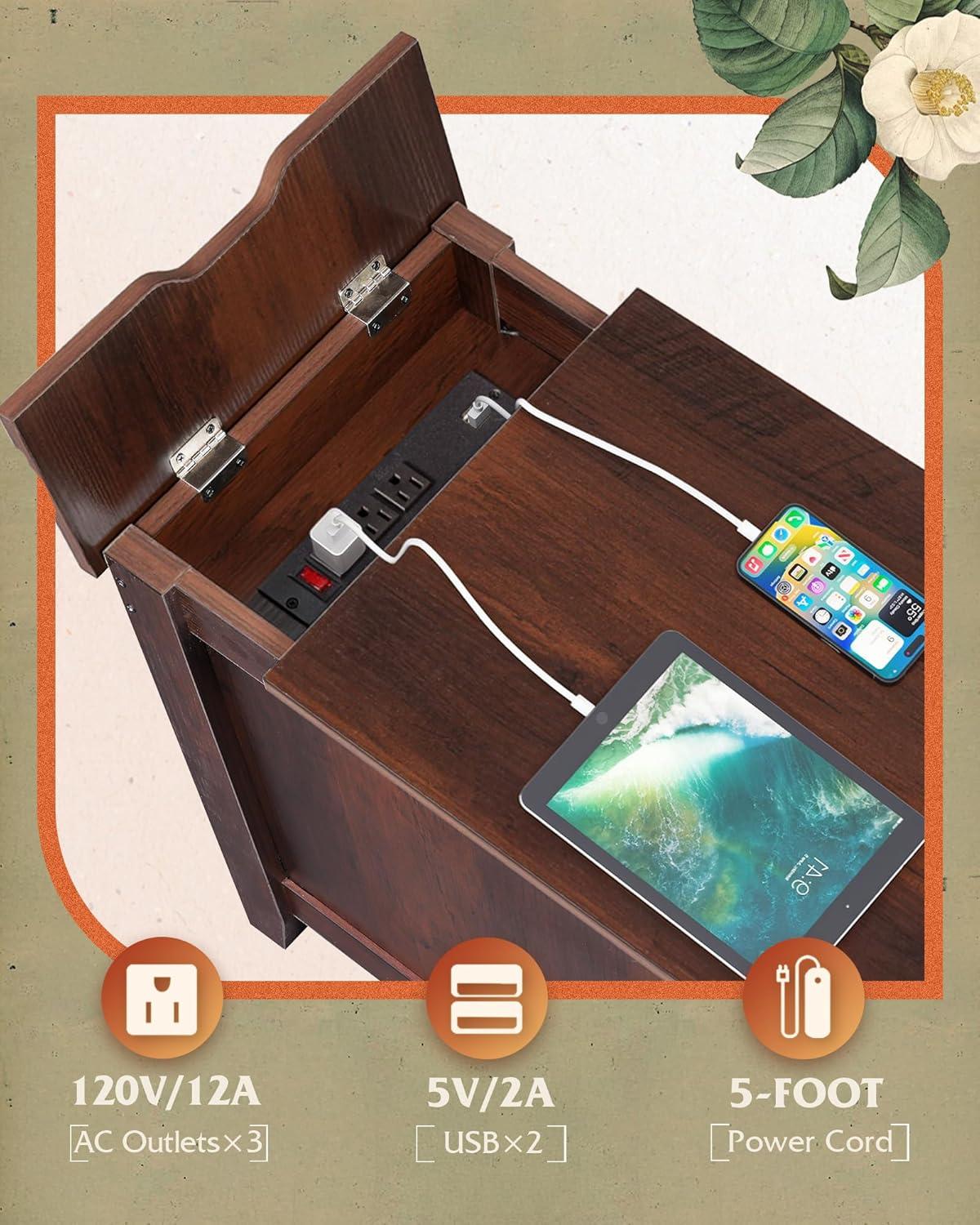 End Table with Charging Station】This small end table has 2 AC outlets and 2 USB ports,which satisfies you to use multiple plugs simultaneously, keeping power at your fingertips and never worrying about charging when you use your electronic devices on the couch.