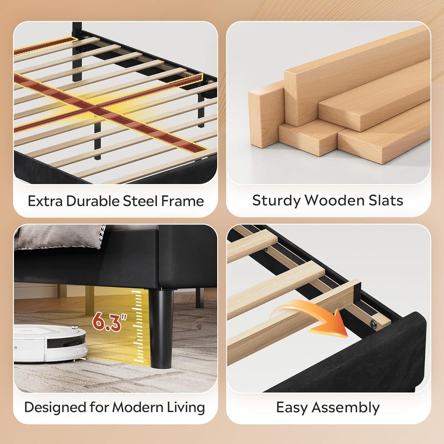【No Box Spring Needed】 Designed with strong wood slats support, this bed frame requires no box spring—stable, durable, and cost-saving.