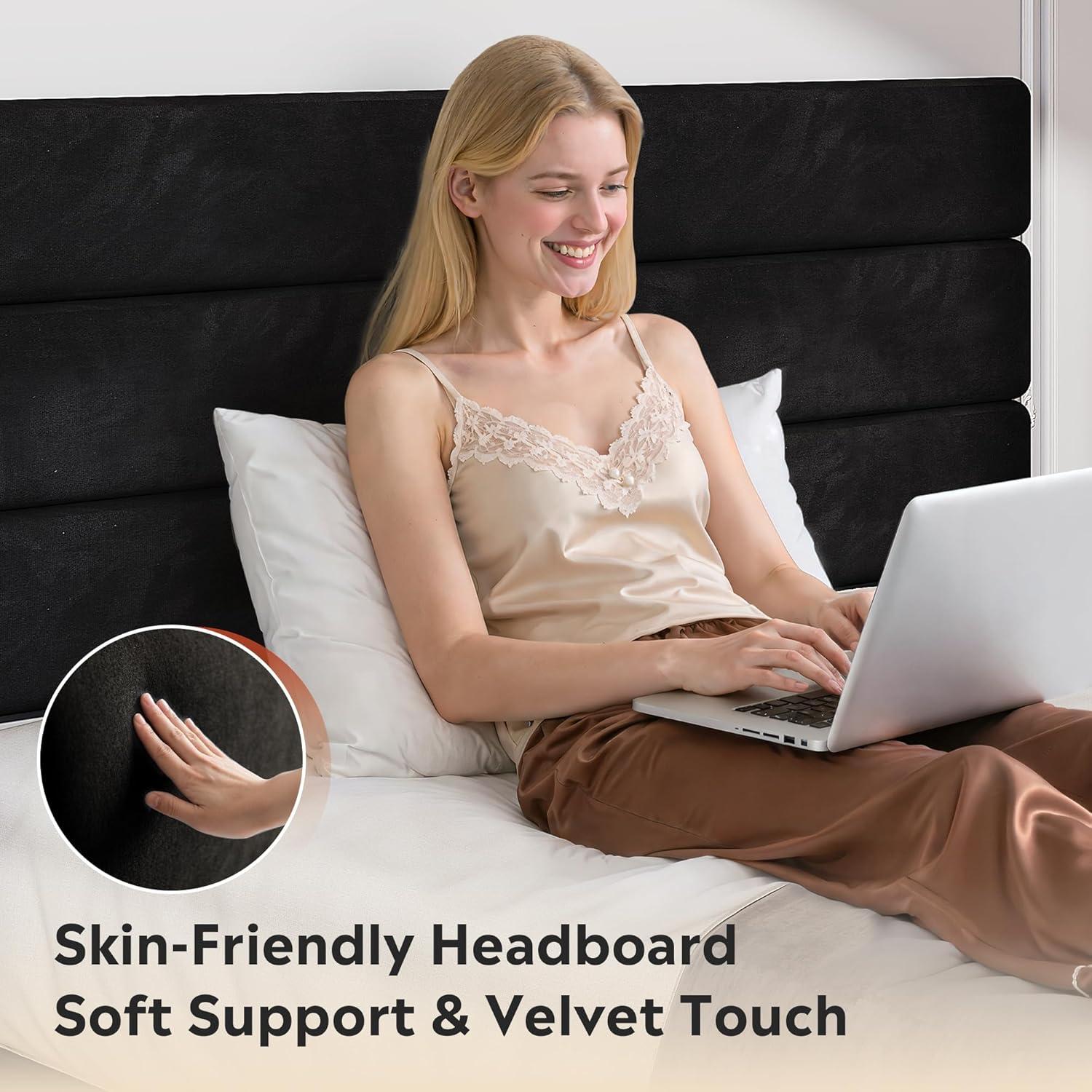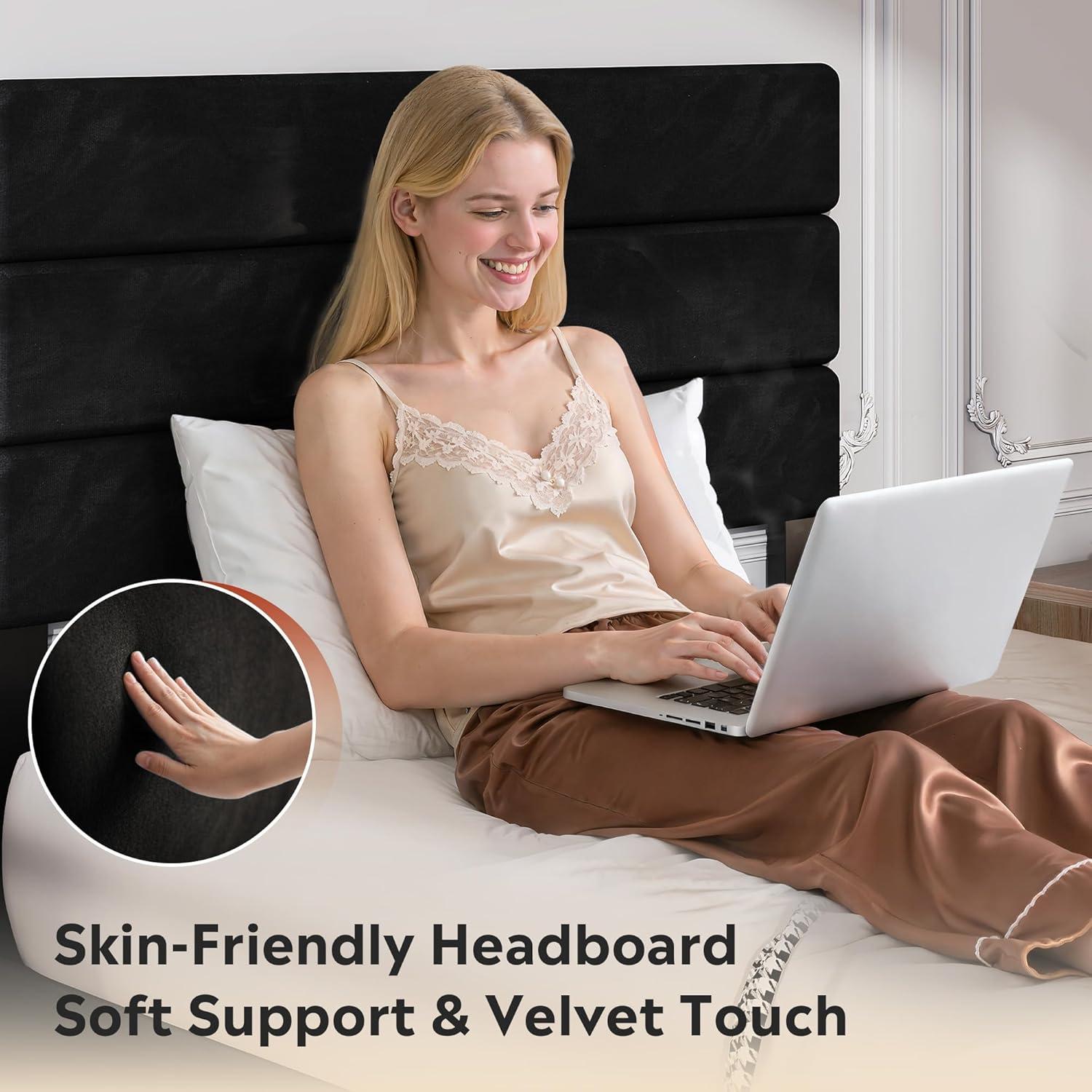 【Premium Upholstered Design】 Upholstered in premium velvet fabric with high-density foam padding for a soft, comfortable feel; tufted headboard design adds a touch of elegance to any bedroom.
