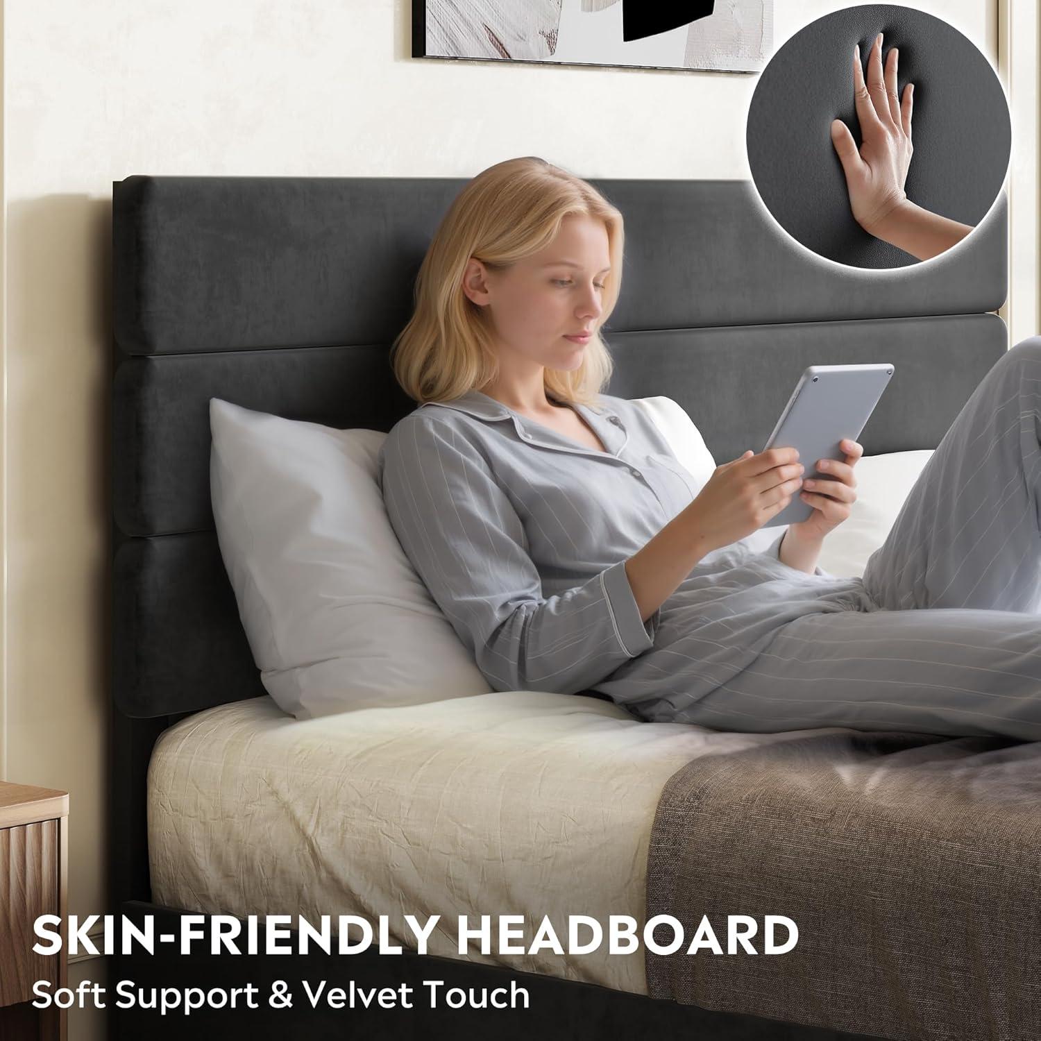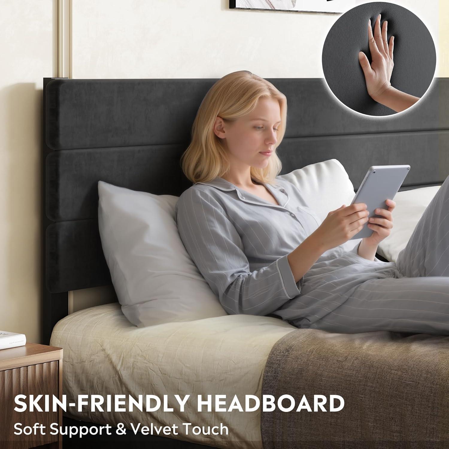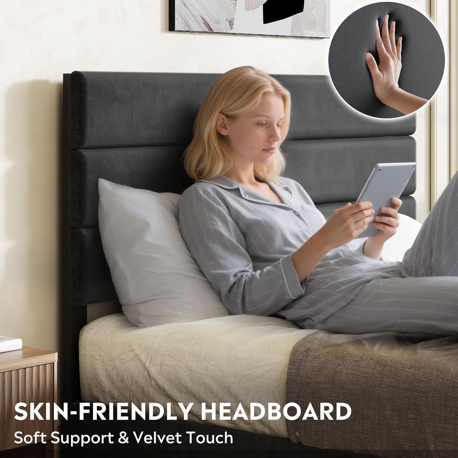 【Premium Upholstered Design】 Upholstered in premium velvet fabric with high-density foam padding for a soft, comfortable feel; tufted headboard design adds a touch of elegance to any bedroom.