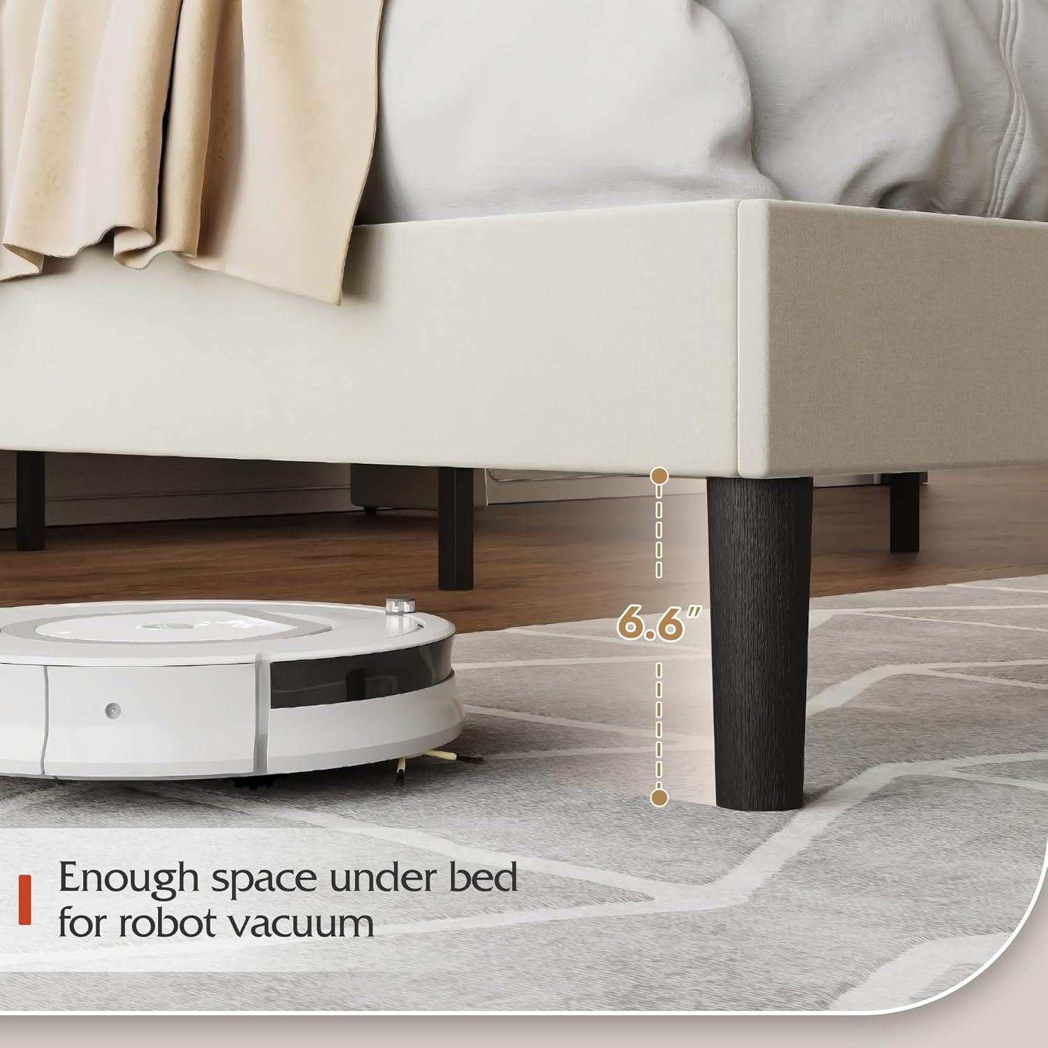 【Practical Under-Bed Clearance】With a 6.6-inch ground clearance, this bed frame provides ample space for vacuum robots to glide through, making cleaning effortless and keeping your bedroom tidy.