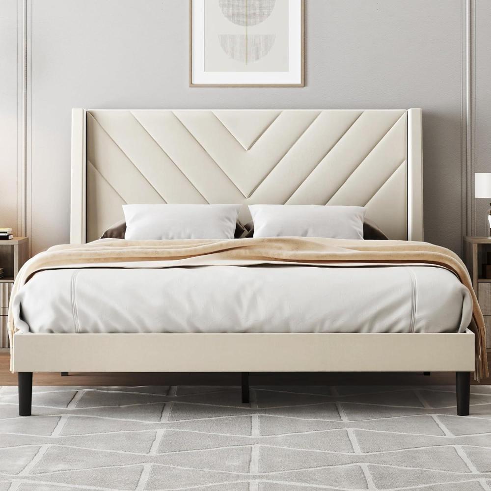 Be the first to review “WLIVE Queen Size Upholstered Bed Frame with Wing Side Tufted Headboard, Velvet Tufted Platform Bed, Sturdy Metal & Wooden Slats Support, No Box Spring Needed, Beige(Beige)”