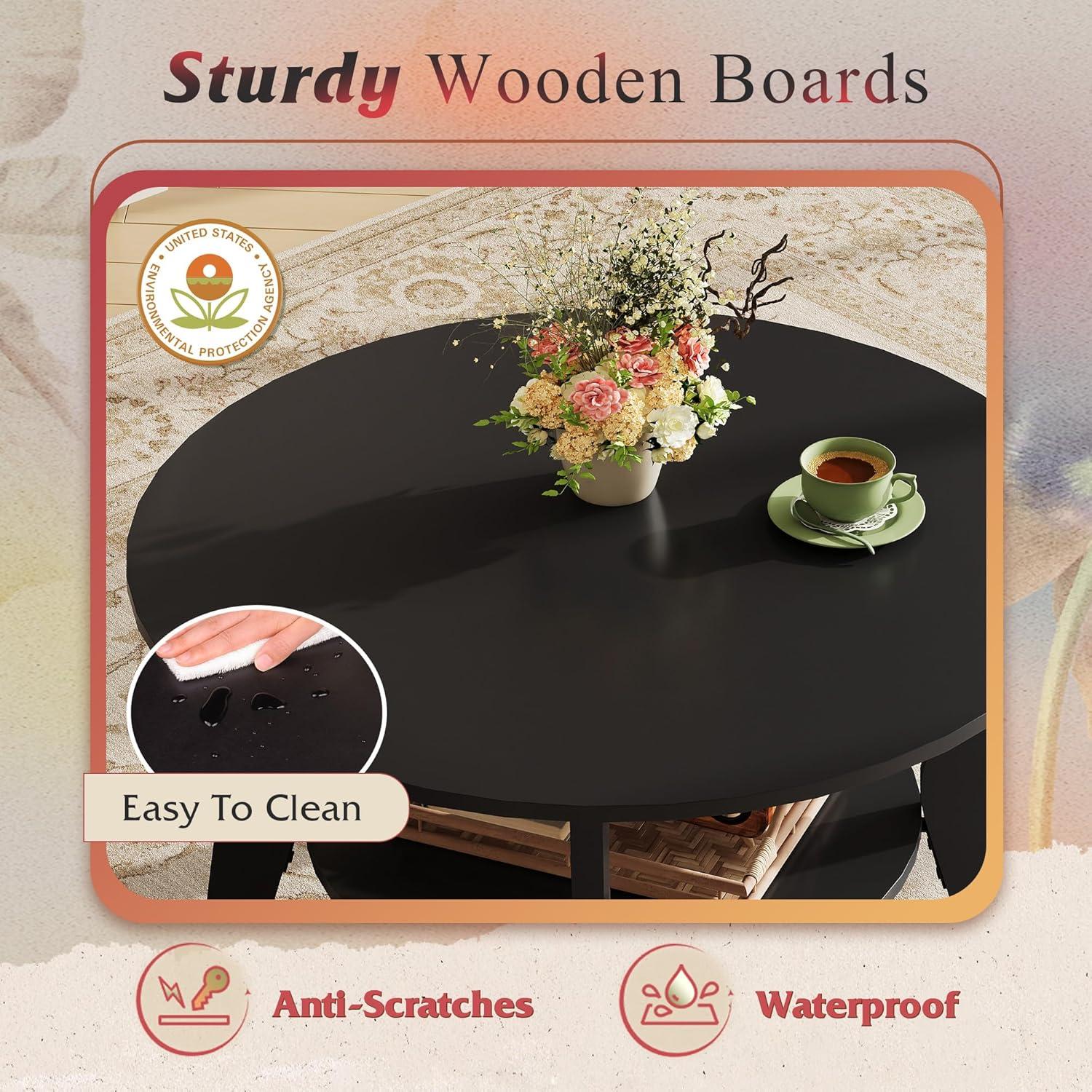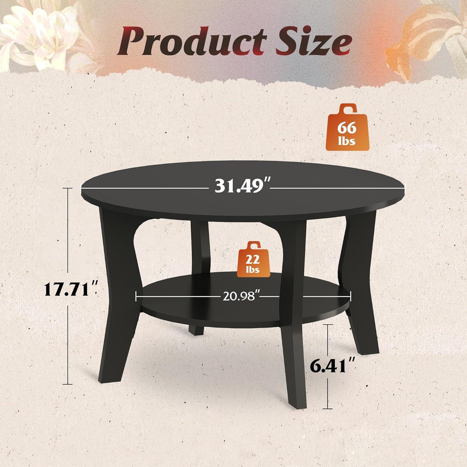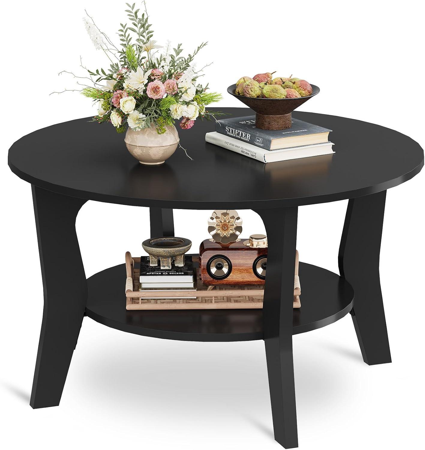 【2-Tier Coffee Table】WLIVE round coffee table has 4-tier open shelf, and the high-strength wooden tabletop can be used to place tea cups, books, tissues and other daily necessities. This coffee table round will blend in perfectly with your living room and add a touch of mid-century modern to your home.