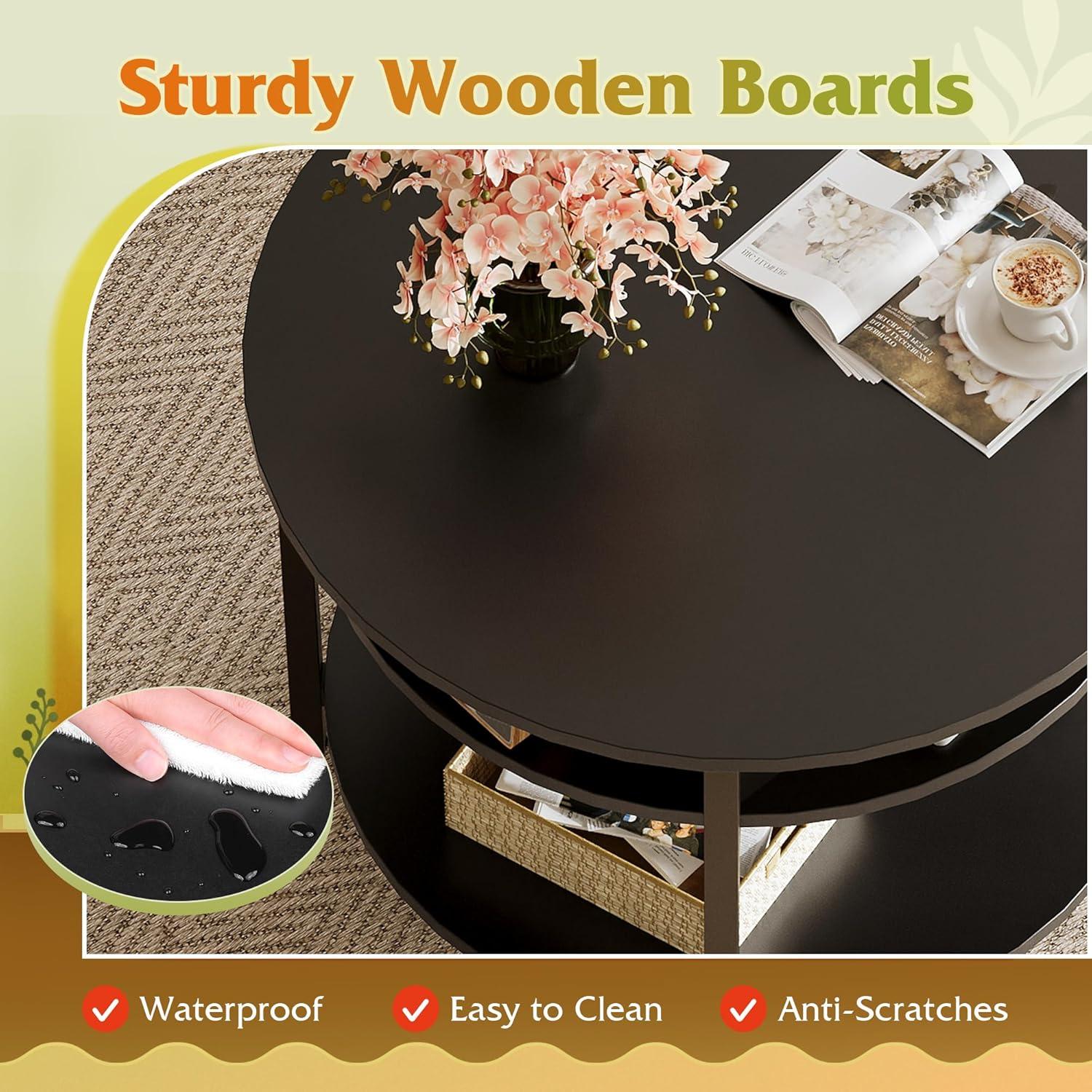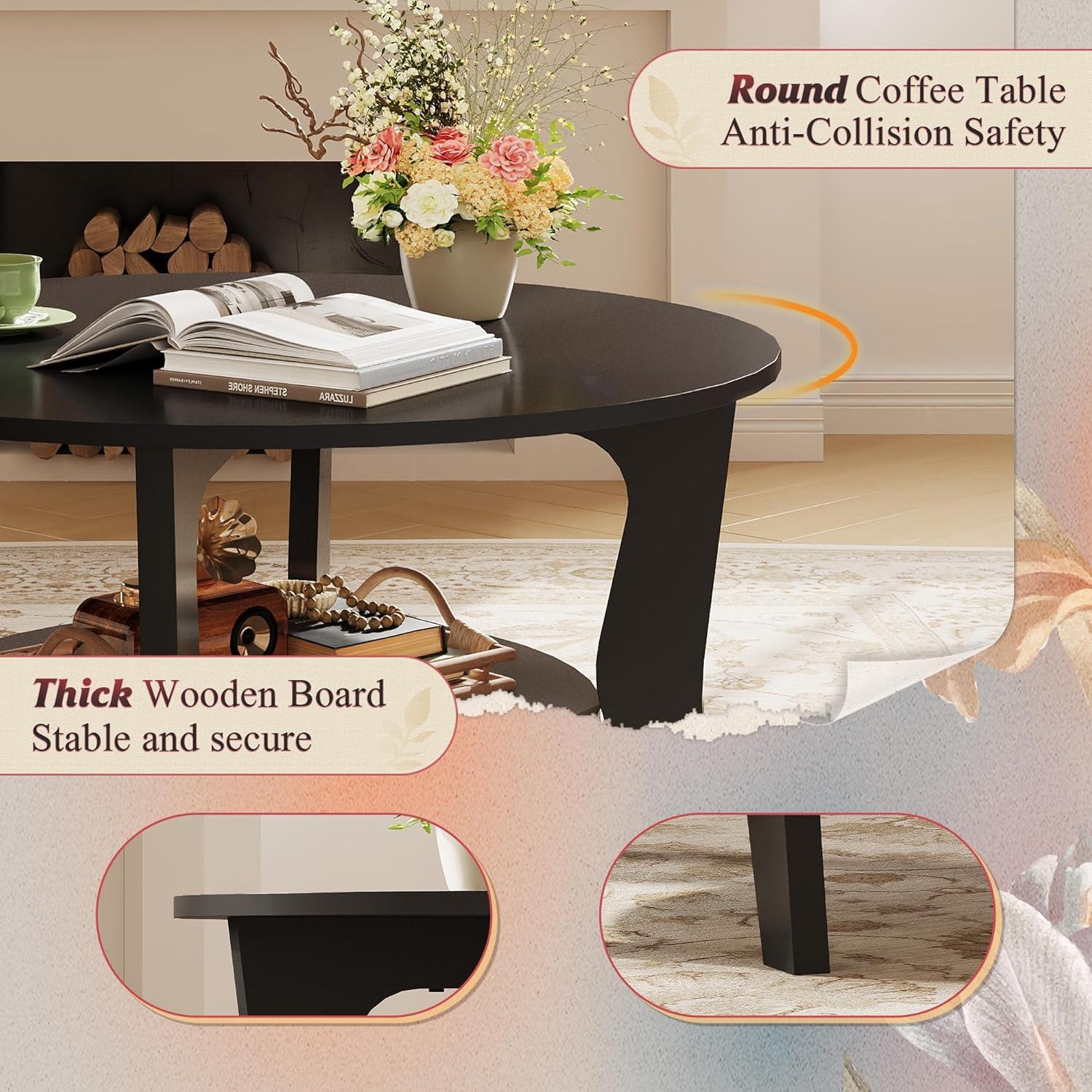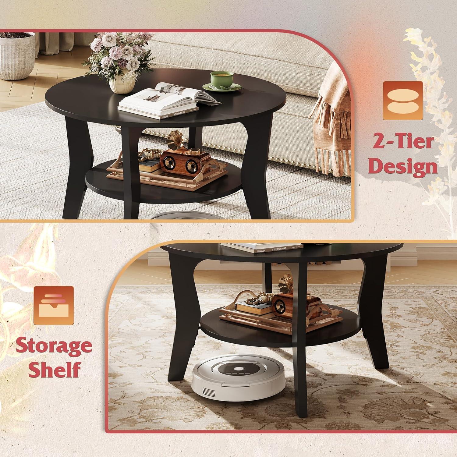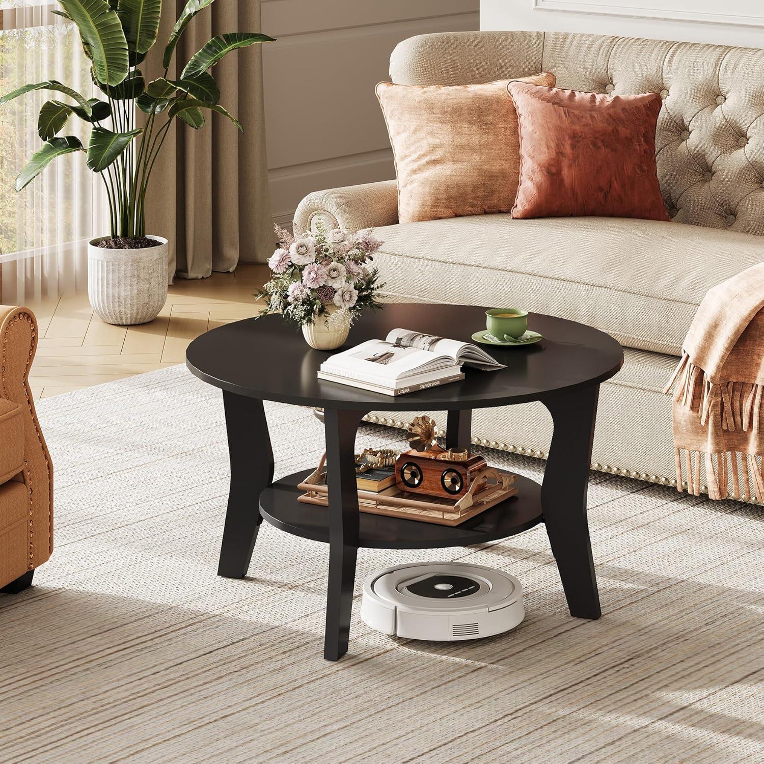 【2-Tier Coffee Table】WLIVE round coffee table has 4-tier open shelf, and the high-strength wooden tabletop can be used to place tea cups, books, tissues and other daily necessities. This coffee table round will blend in perfectly with your living room and add a touch of mid-century modern to your home.