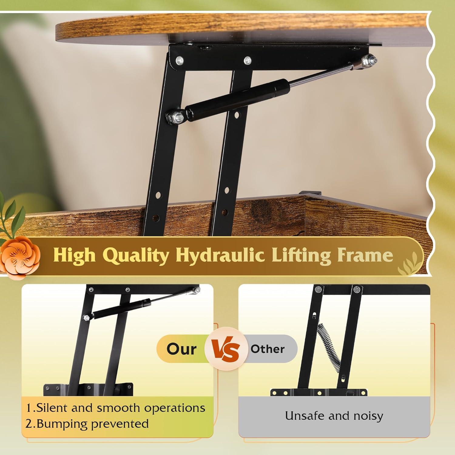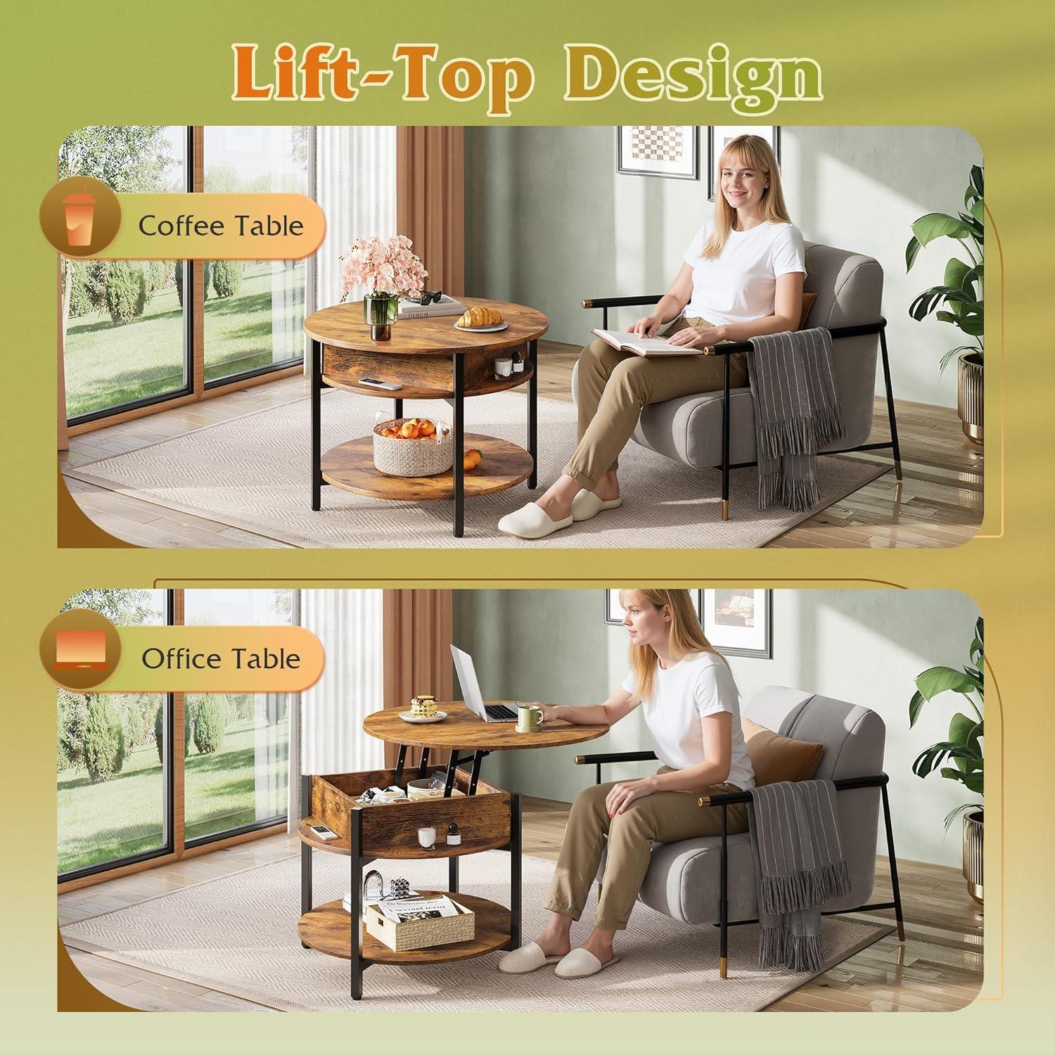 Round lift coffee table: Circular adjustable lift design lets you set the table at just the right height for comfort. Whether in the living room or a reception area, it's perfect for a coffee table, office work, dining, and storage needs.The circular design is more aesthetically pleasing and collision-resistant, ensuring the safety of children and pets.