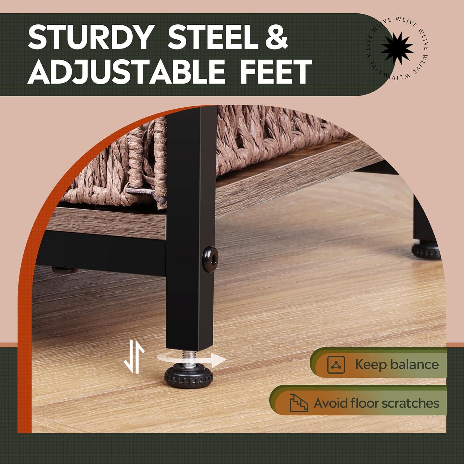 【Adjustable Shelf】The 2-level adjustable shelf is removable and can adjust at 2.6″ in height. Place the shelf on the lower level and you'll have equal space above and below for your storage boxes, small greenery, remote controls, stereo and more. Place the shelf on the upper level and the lower shelf can hold taller items such as magazines and books, fully utilize the storage space of the couch side table.