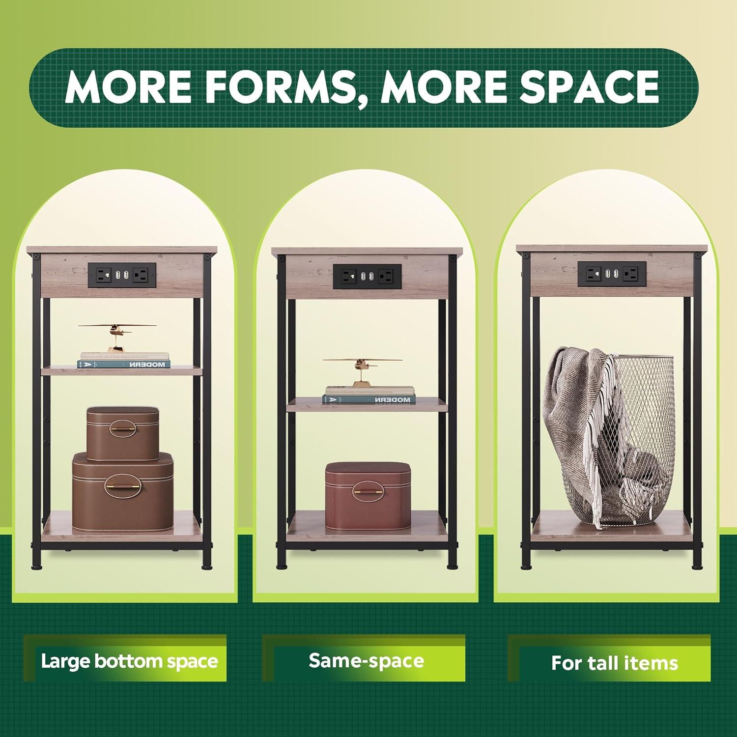 【Super Space-Saving】Measuring 13.4″ W x 11.7″ D x 22.8″ H, 3-Tier small bedside table can be easily moved and placed, making it perfect for small spaces such as a corner of a bedroom or between living room sofas.