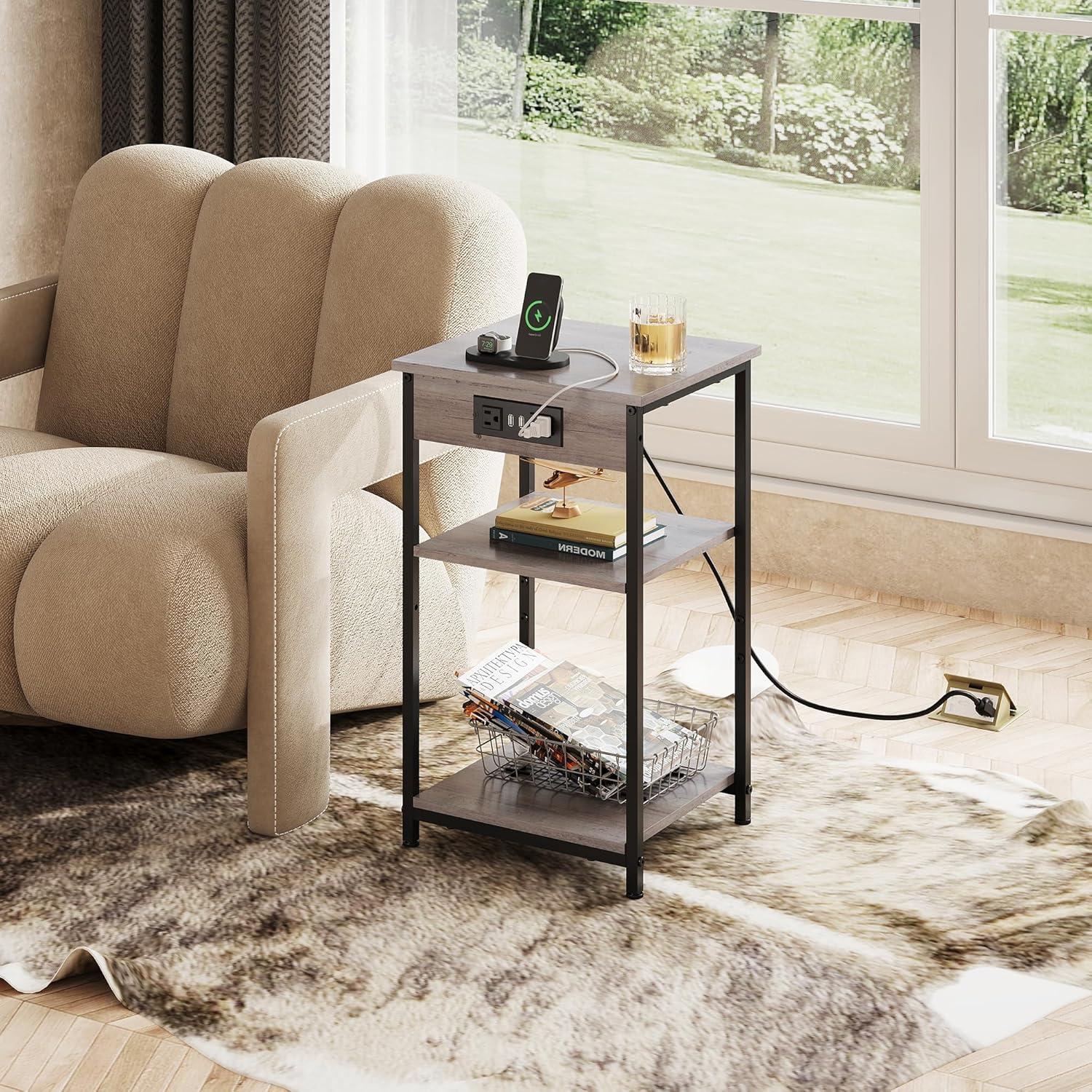 【Easy-Charging】This small end table has 2 AC outlets and 2 USB ports. The spacing is sufficient, which satisfies you to use multiple plugs simultaneously, keeping power at your fingertips and never worrying about charging when you use your electronic devices on the couch.
