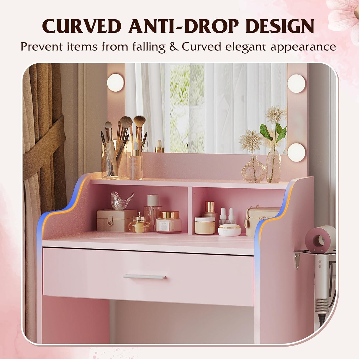 【Built for Safety & Daily Strength】 Includes an anti-tip kit to secure the makeup table to your wall—a must for families. The vanity desktop supports 110 lbs (50kg), and the drawer holds 11 lbs (5kg), offering peace of mind and durability for years of use.