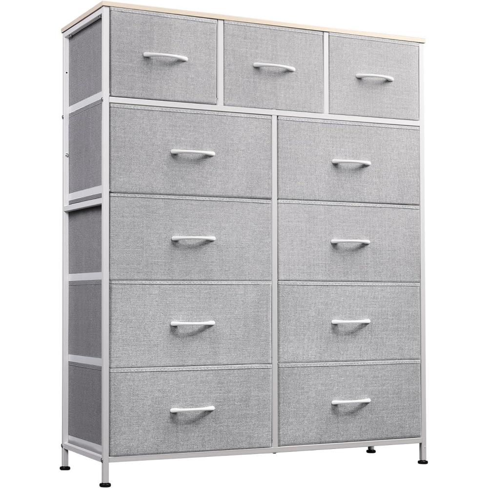Roomy Storage Space: The 11 foldable deep drawers are so spacious that they provide endless organizational possibilities. Wooden top is great for lamps, clocks, glasses and other daily essentials, keeping them in your reach.