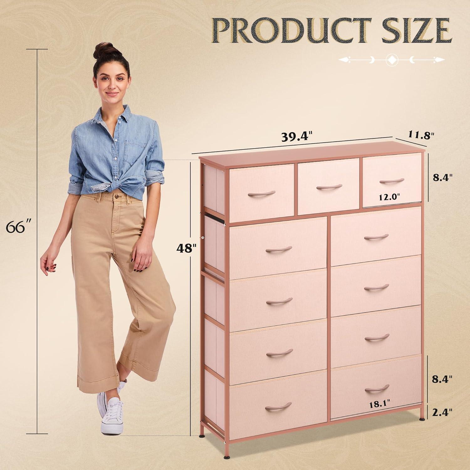 Overall Dimension: The dresser measures 39.6″ L x 11.8″ W x 49″ H. The tower of drawers comes with detailed instructions and all hardware needed for installation, and is easy to assemble and disassemble.
