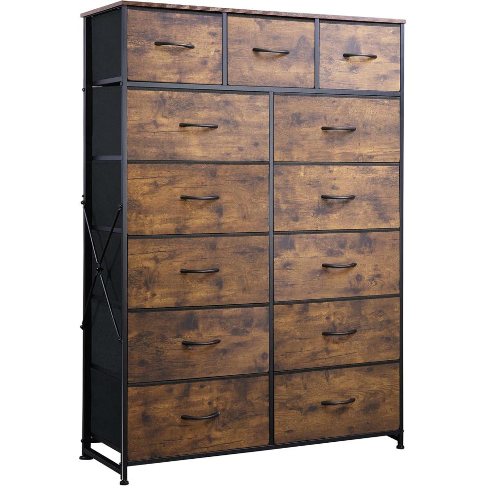 imageWLIVE Storage Organizer Unit with 13 Fabric Bins Storage Drawers Organizer with Steel Frame Tall Storage Tower Organizaton for Living Room Hallway Office Charcoal BlackRustic Brown Wood Grain Print