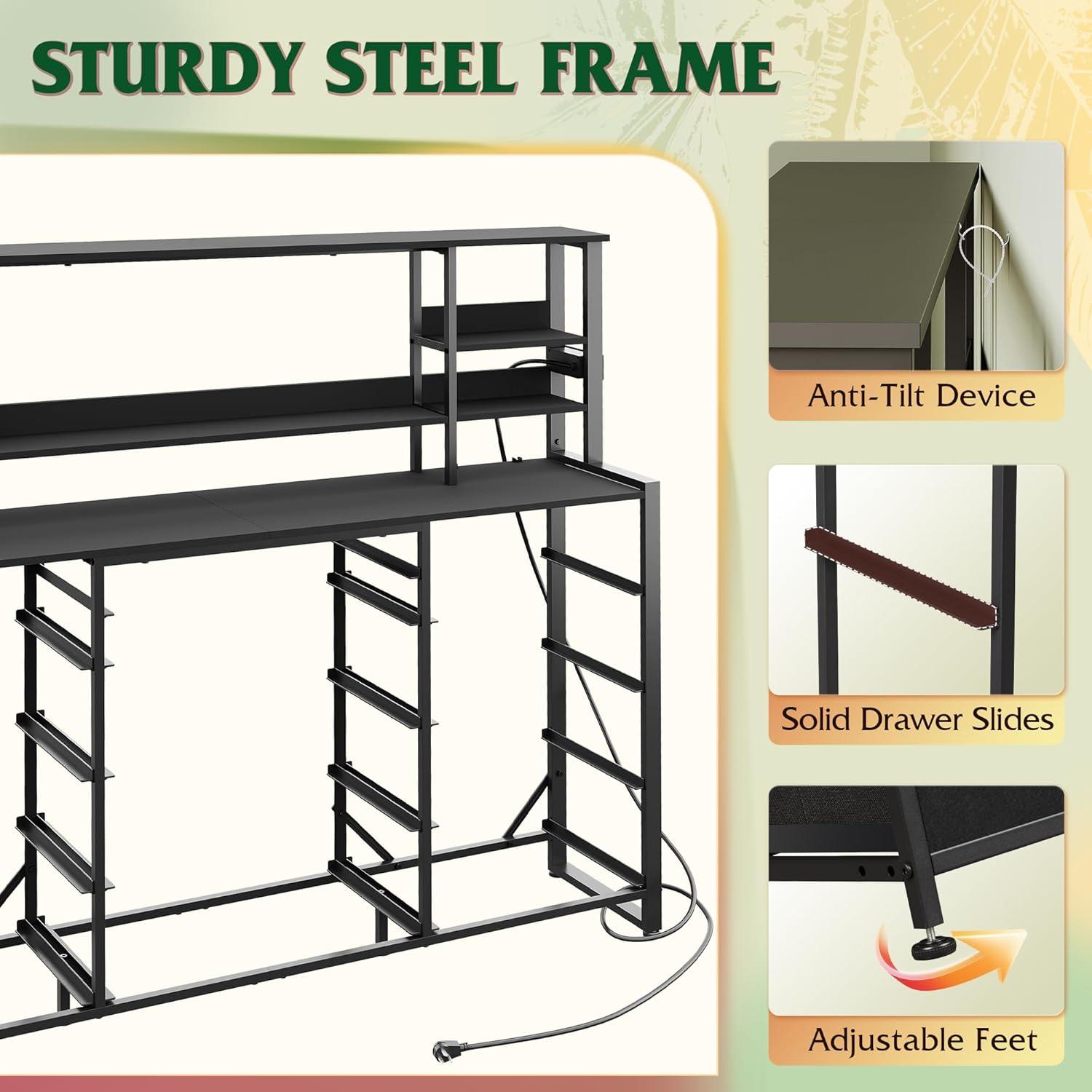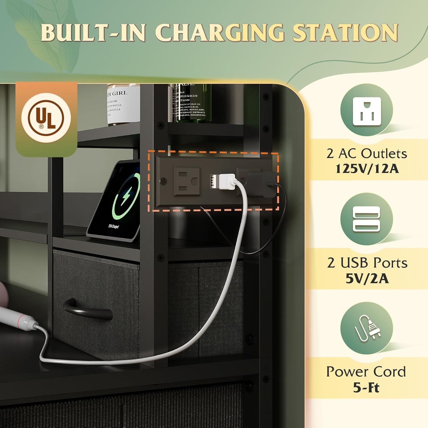 【✨ With Power Outlets】Say goodbye to messy wires! This storage drawer unit is equipped with 2 AC sockets +2 USB ports, 1.5m flexible cable length, hair dryer mobile phone can be done, instant increase desktop cleanliness by 40%, through UL/ETL certification, electricity safety!