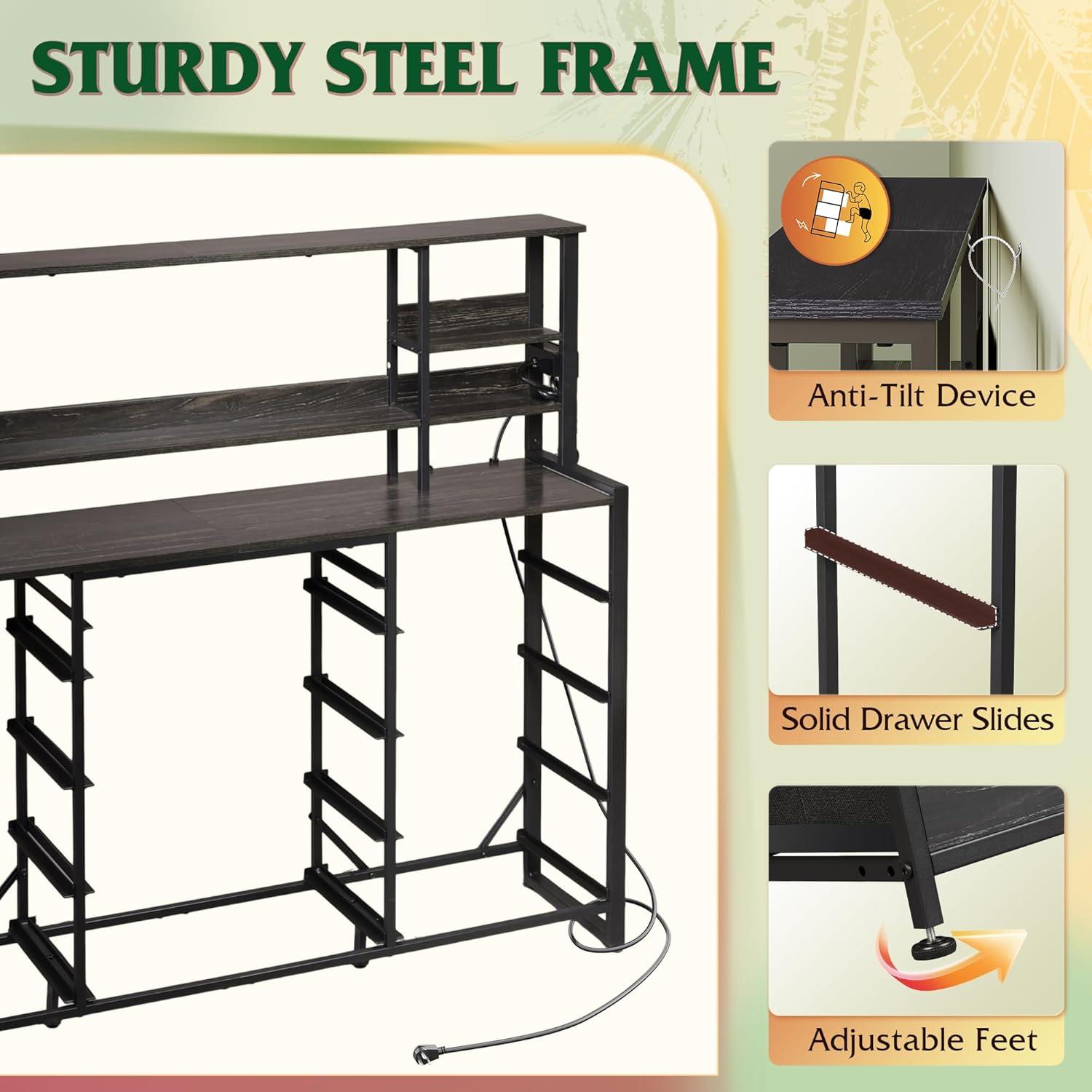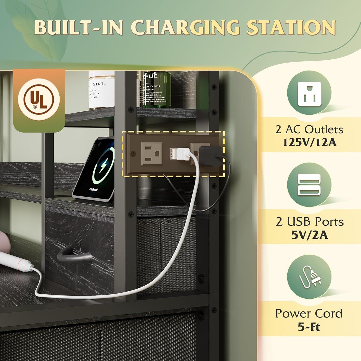 【✨ With Power Outlets】Say goodbye to messy wires! This storage drawer unit is equipped with 2 AC sockets +2 USB ports, 1.5m flexible cable length, hair dryer mobile phone can be done, instant increase desktop cleanliness by 40%, through UL/ETL certification, electricity safety!
