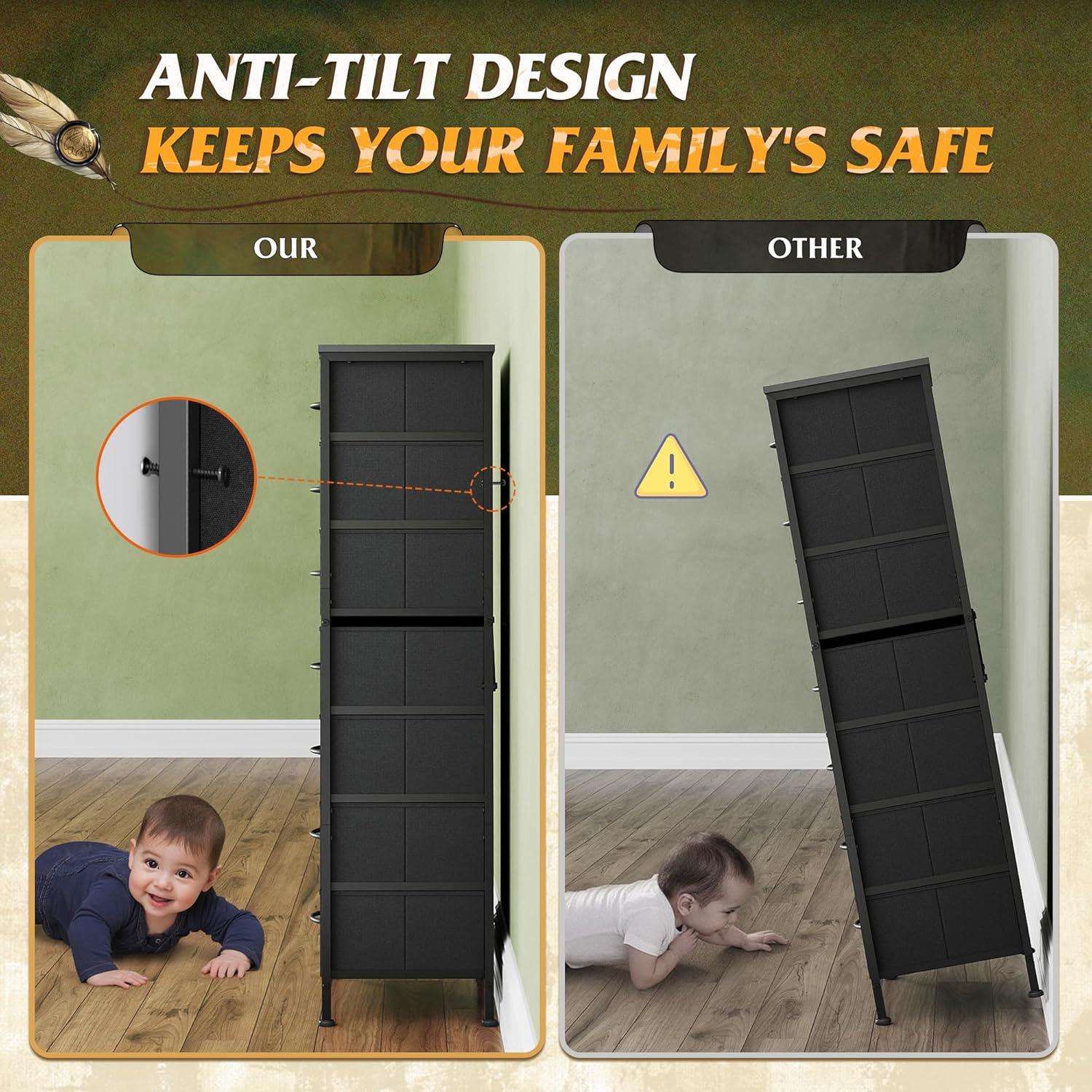 【✨ Stable Structure Safety Assured】This dressers designed with 15mm thickened metal steel frame with cross support rods for durability. Additional anti-tilt device can easily fix the cabinet to the wall, ensuring the safety of you, your family and pets, and enjoying a convenient life!