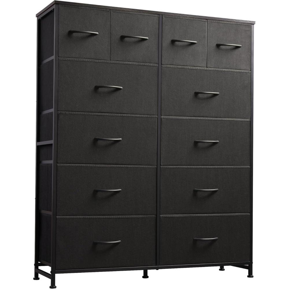 WLIVE Tall Dresser for Bedroom with 12 Drawers, Dressers & Chests of Drawers, Fabric Dresser for Closet, Living Room, Storage Dressers with Storage Drawers, Steel Frame, Wood Top, Charcoal Black(Charcoal Black)