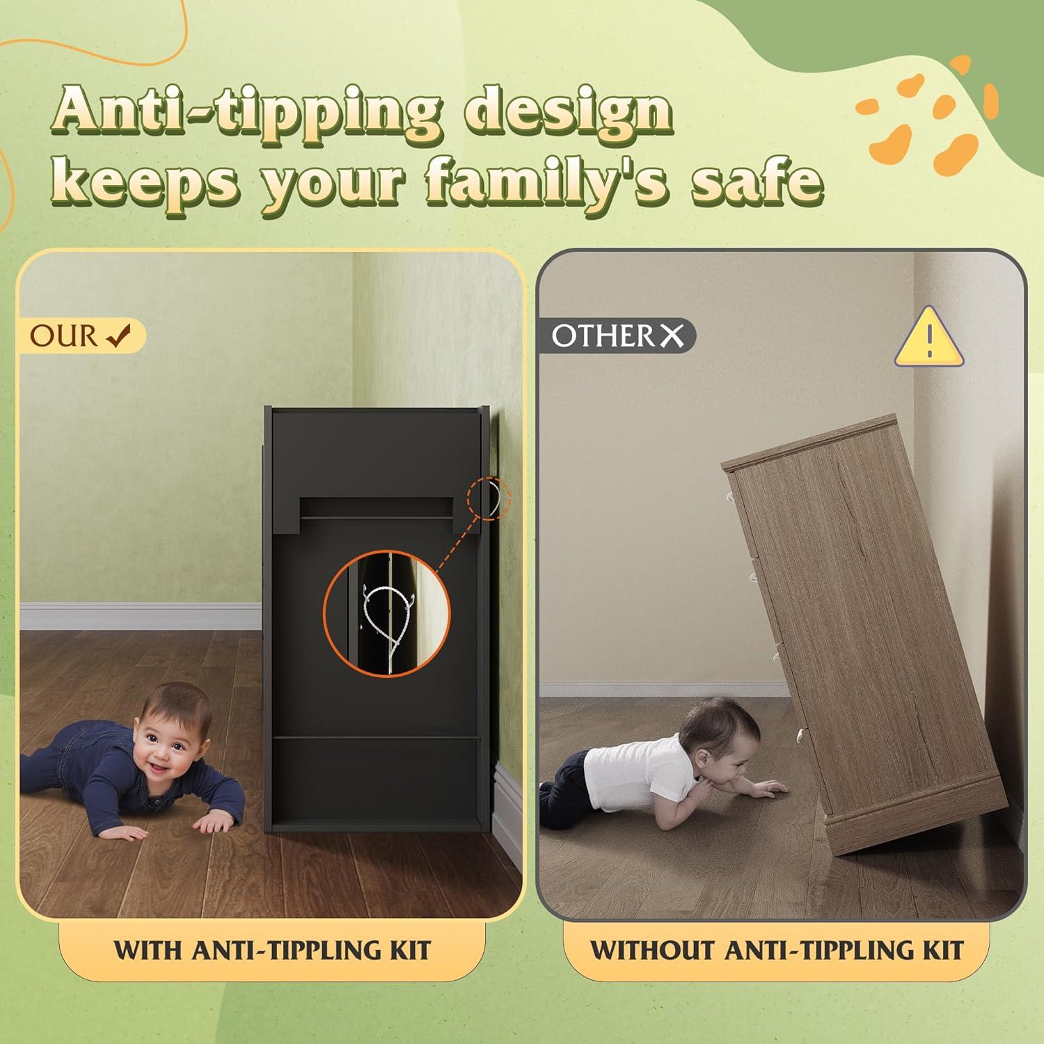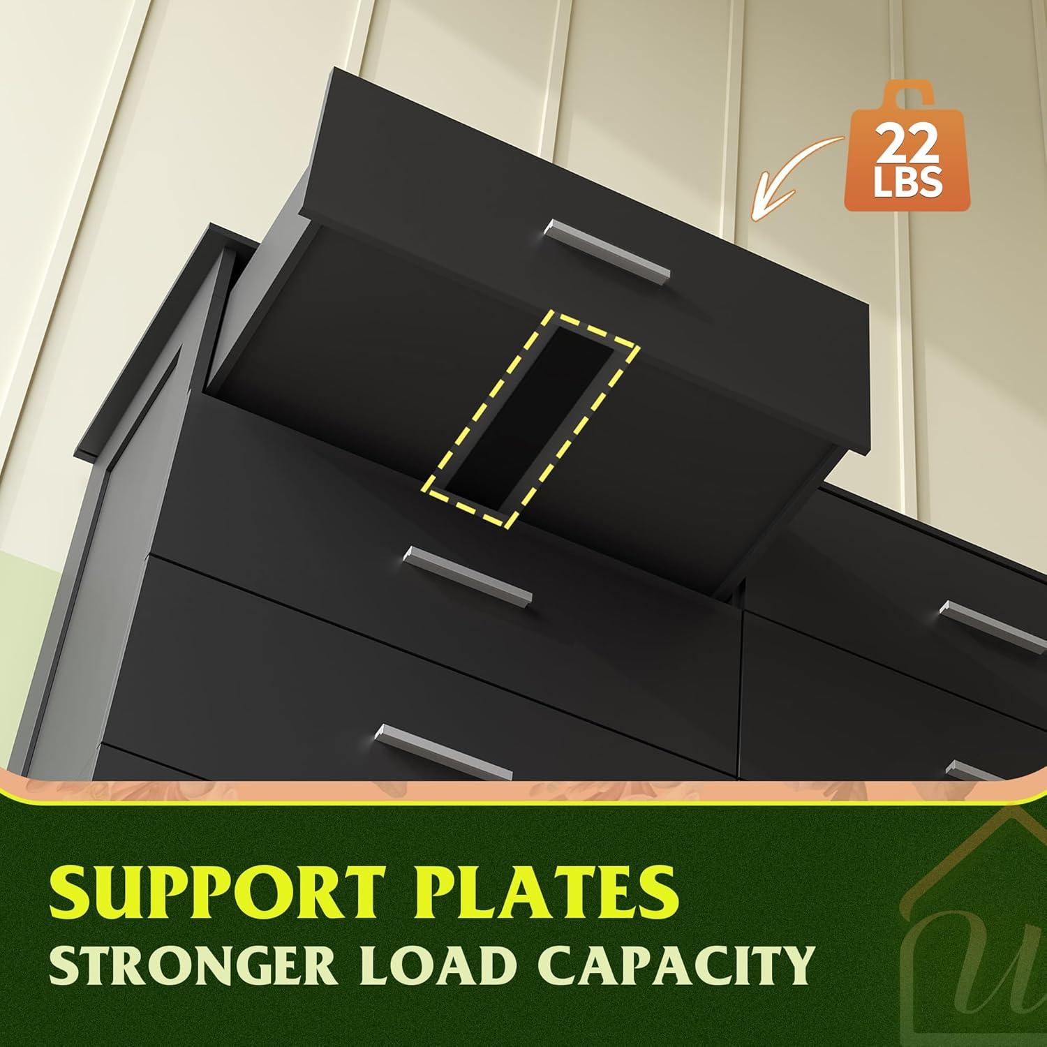 🎄【Sturdy & Durable】 This wooden dresser is equipped with an anti-tipping device design, keeping family members and pets safe. It also has a high load-bearing capacity, the bottom of each drawer has an extra support plate to hold up to 22 lbs and the top surface of the dresser can hold 99 lbs.
